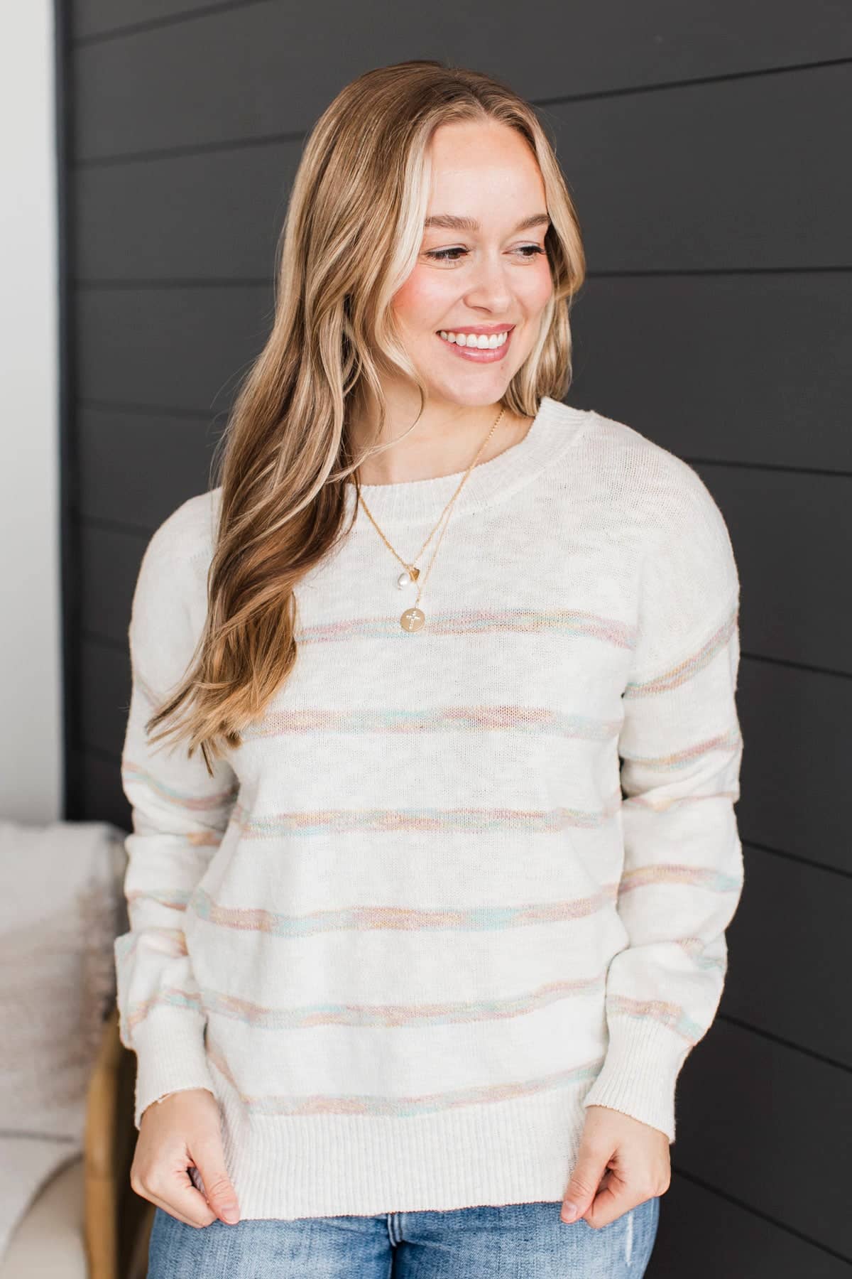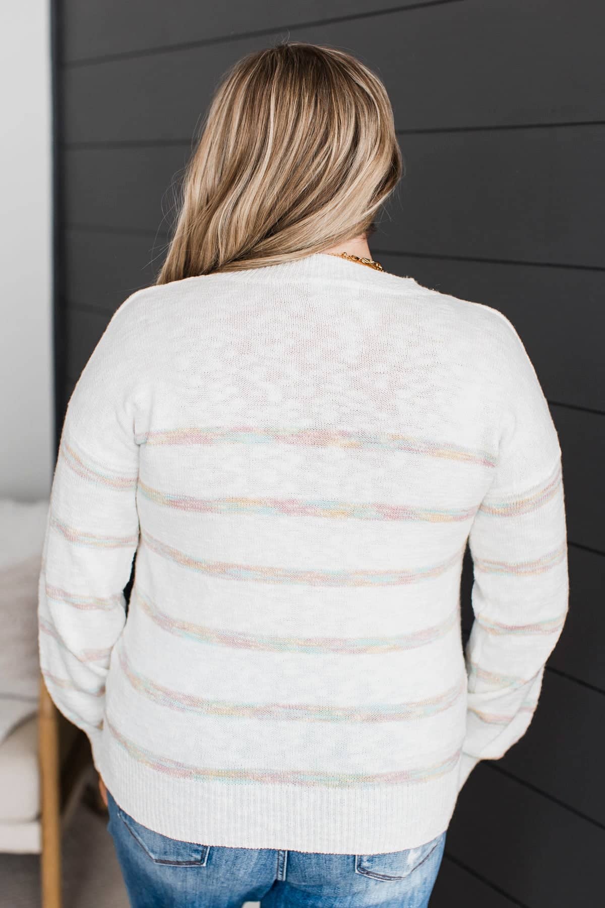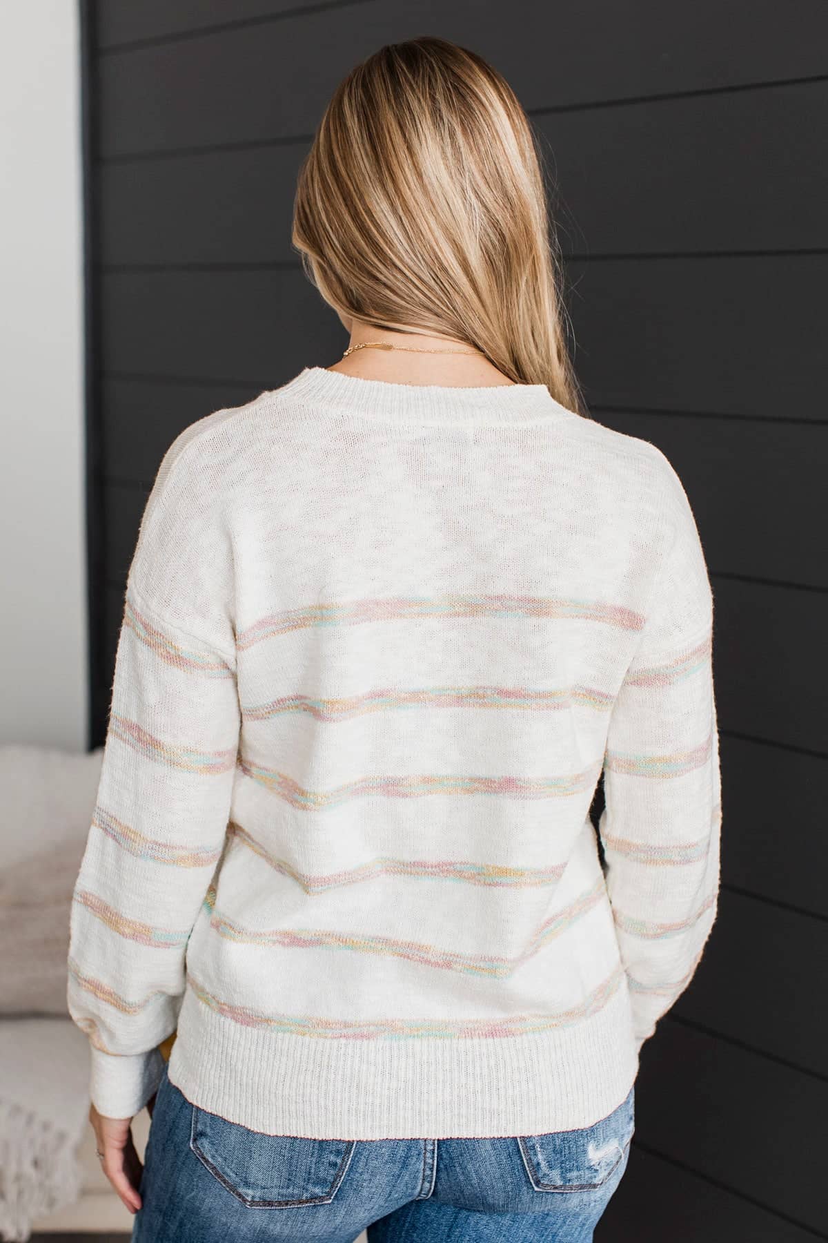 Moments Matter Striped Knit Sweater- Ivory & Pastel Multi-Color