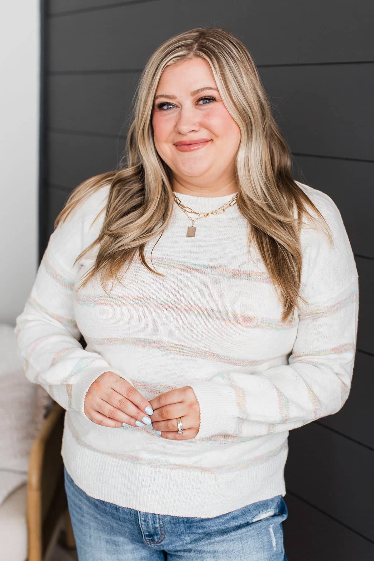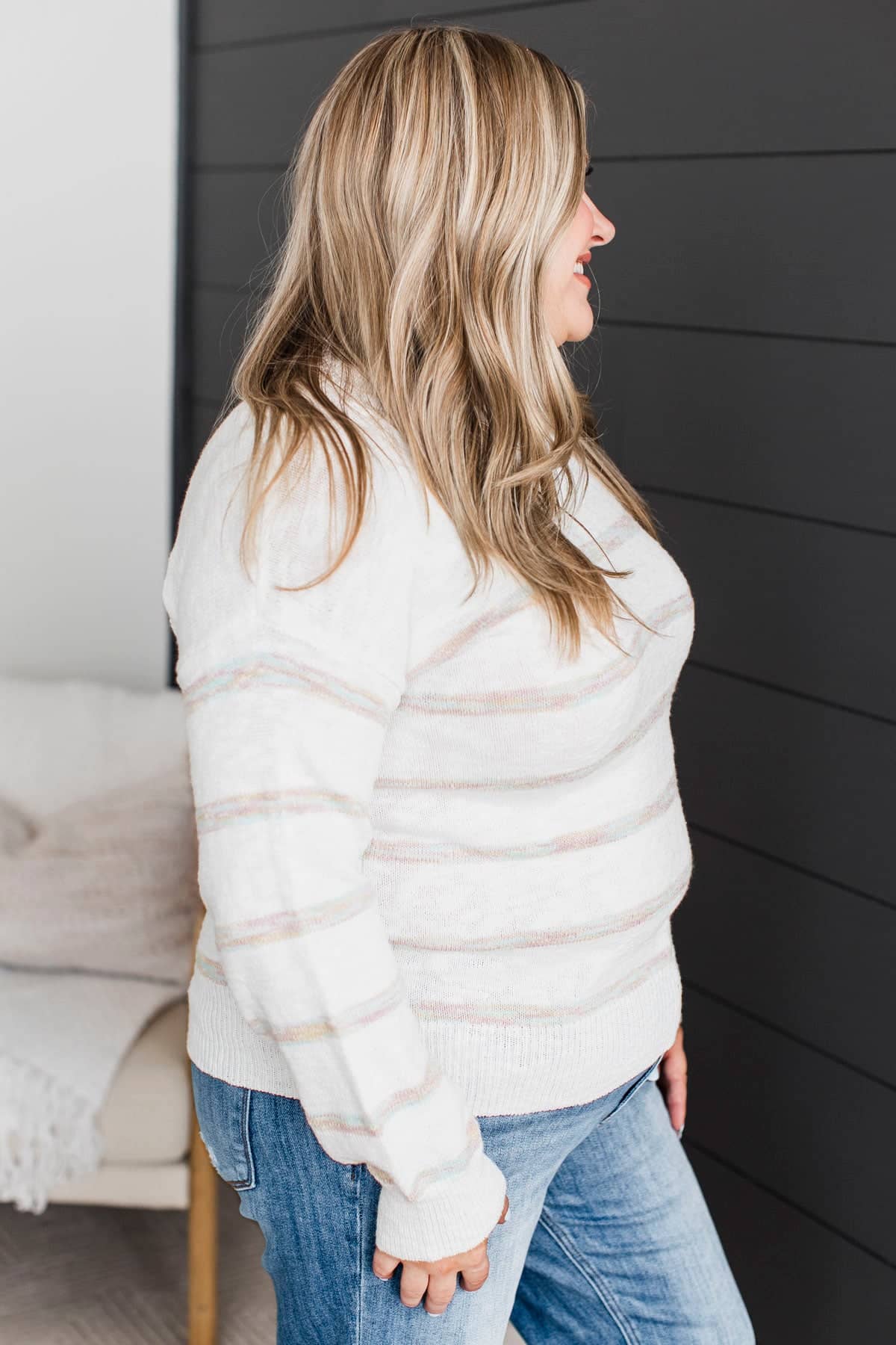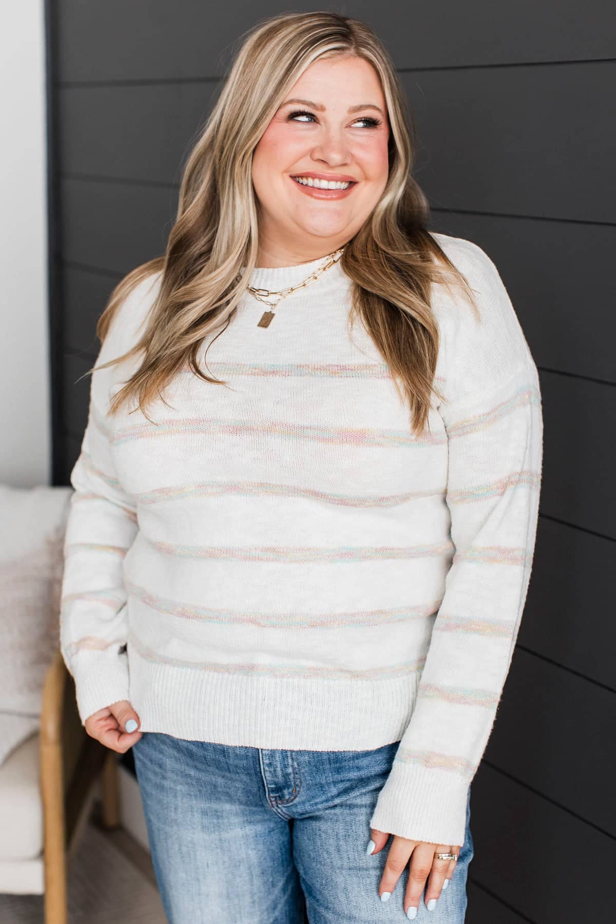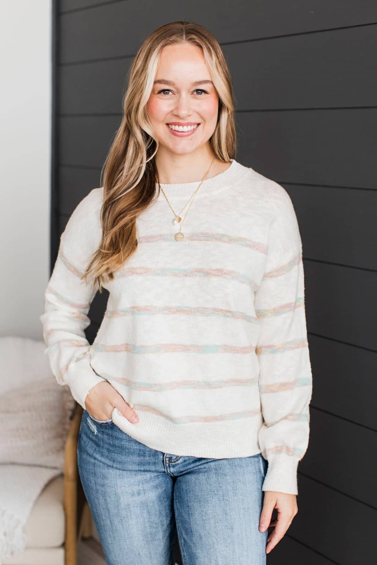 Moments Matter Striped Knit Sweater- Ivory & Pastel Multi-Color