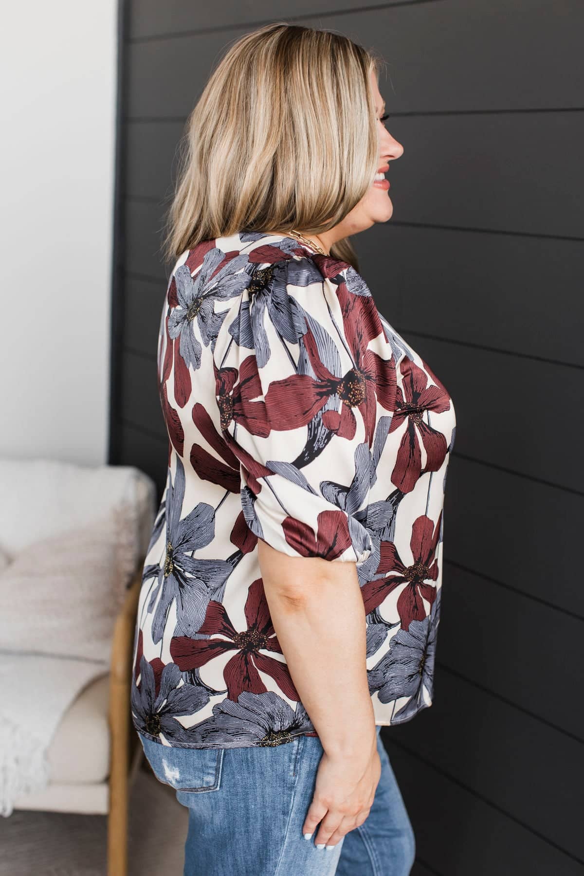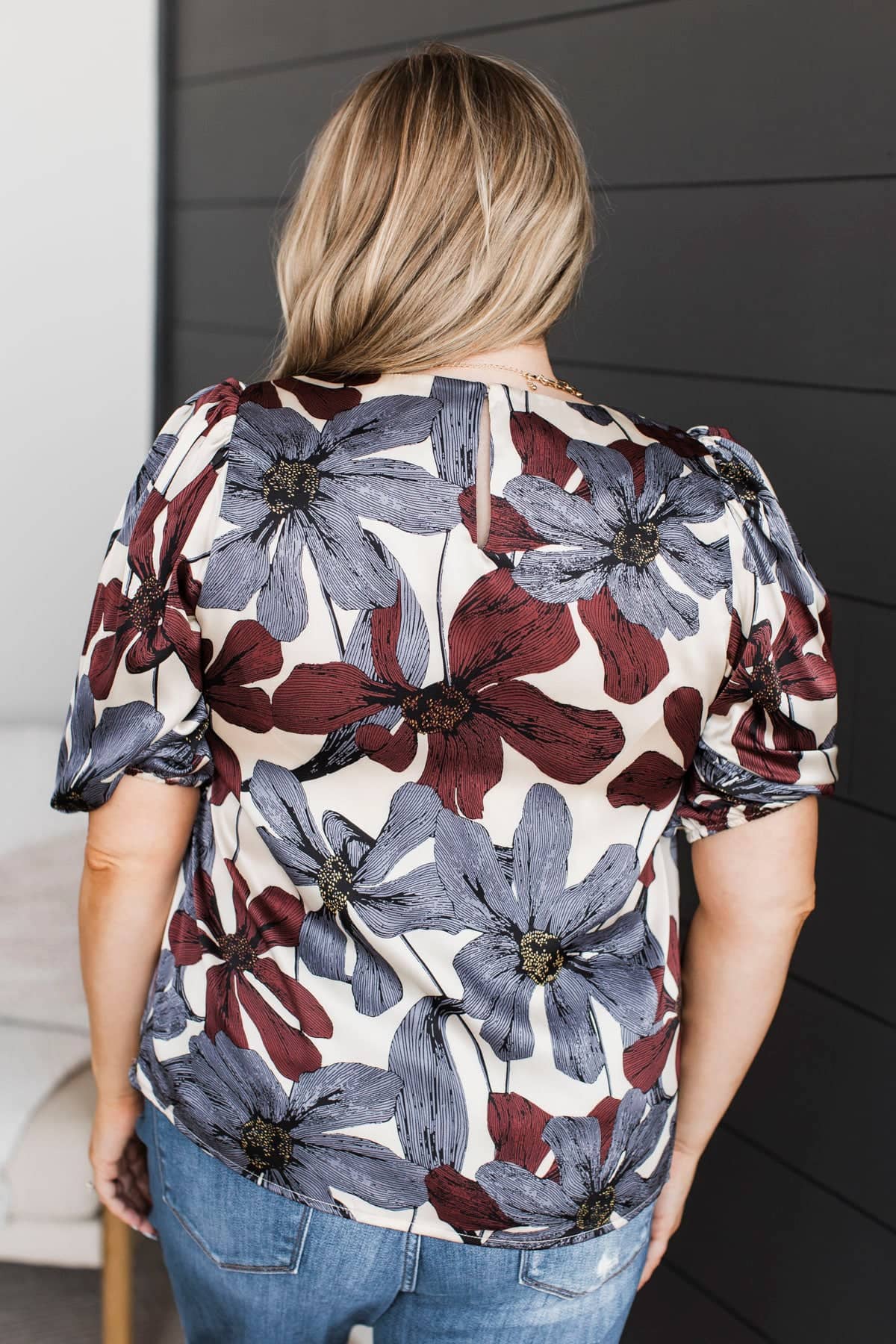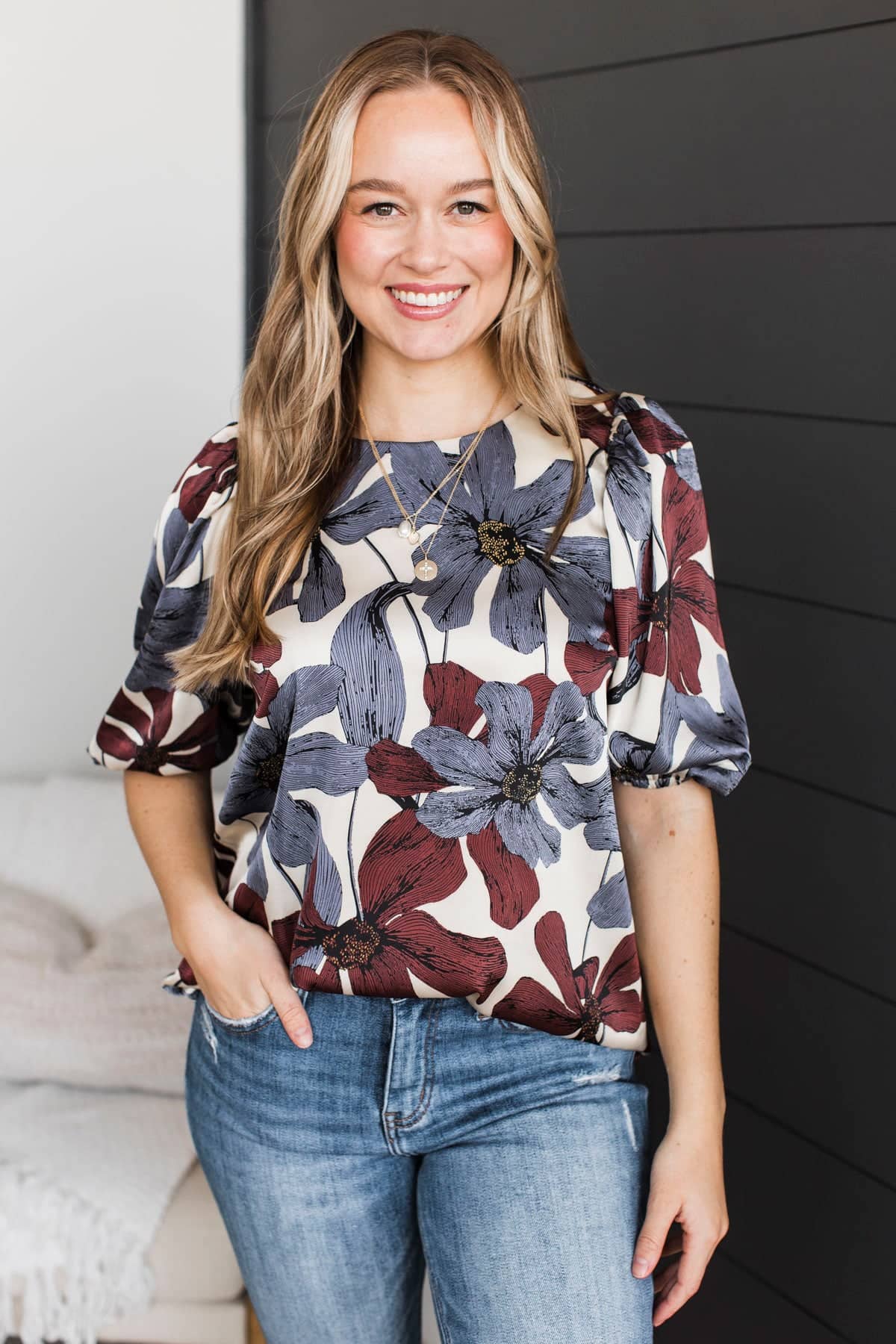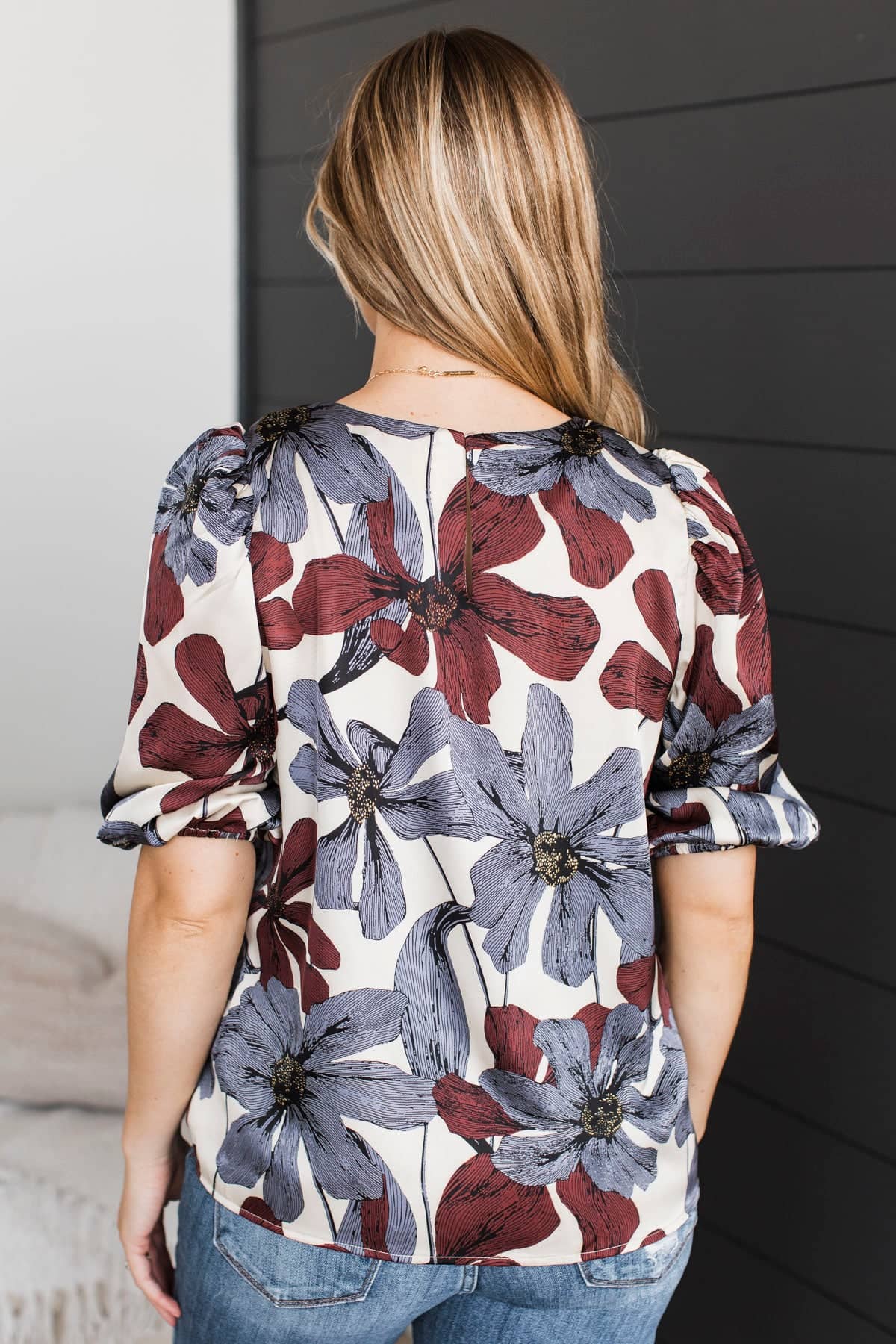 No More Doubts Floral Blouse- Denim Blue & Bone