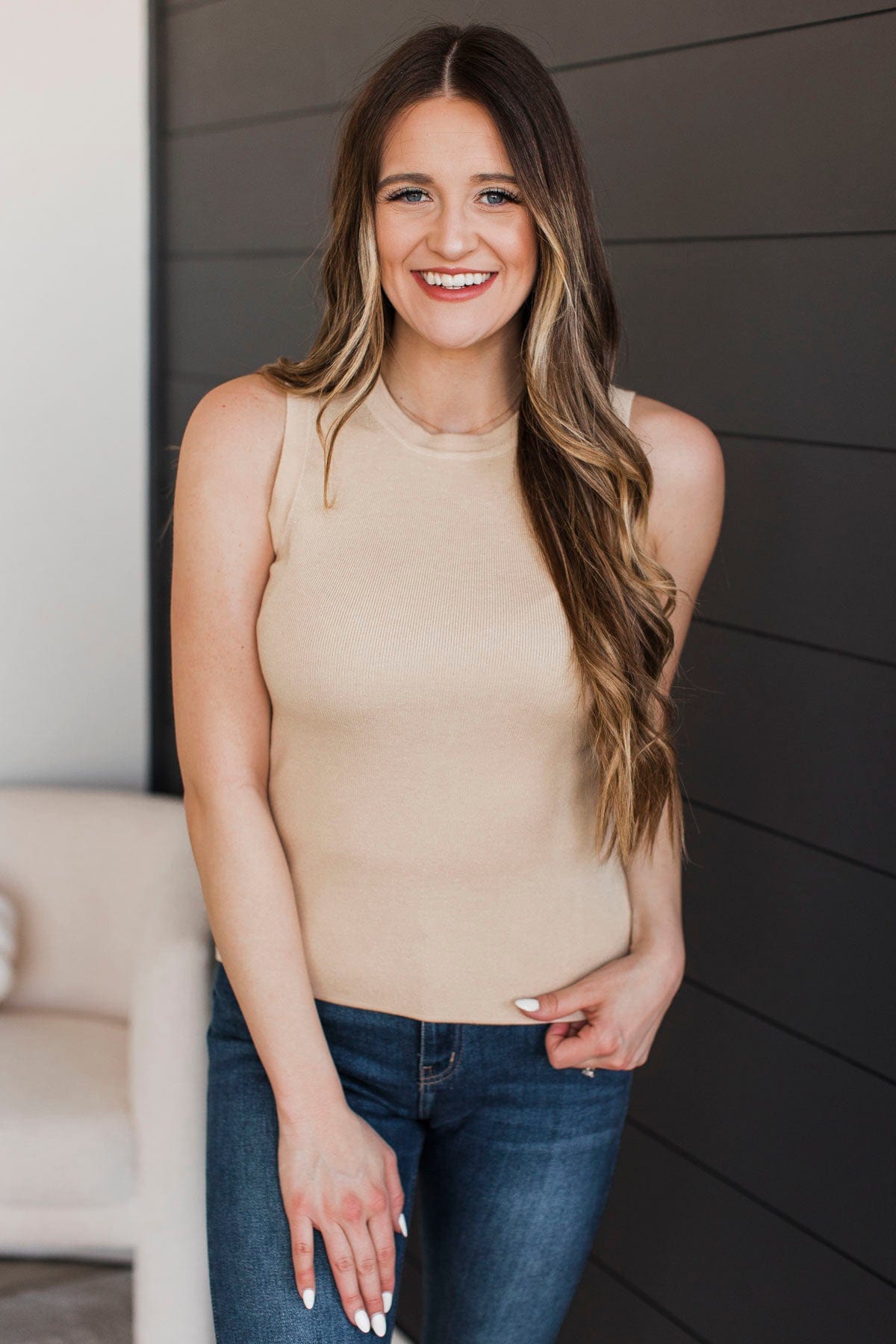 Undeniably Adorable Ribbed Tank Top- Oatmeal
