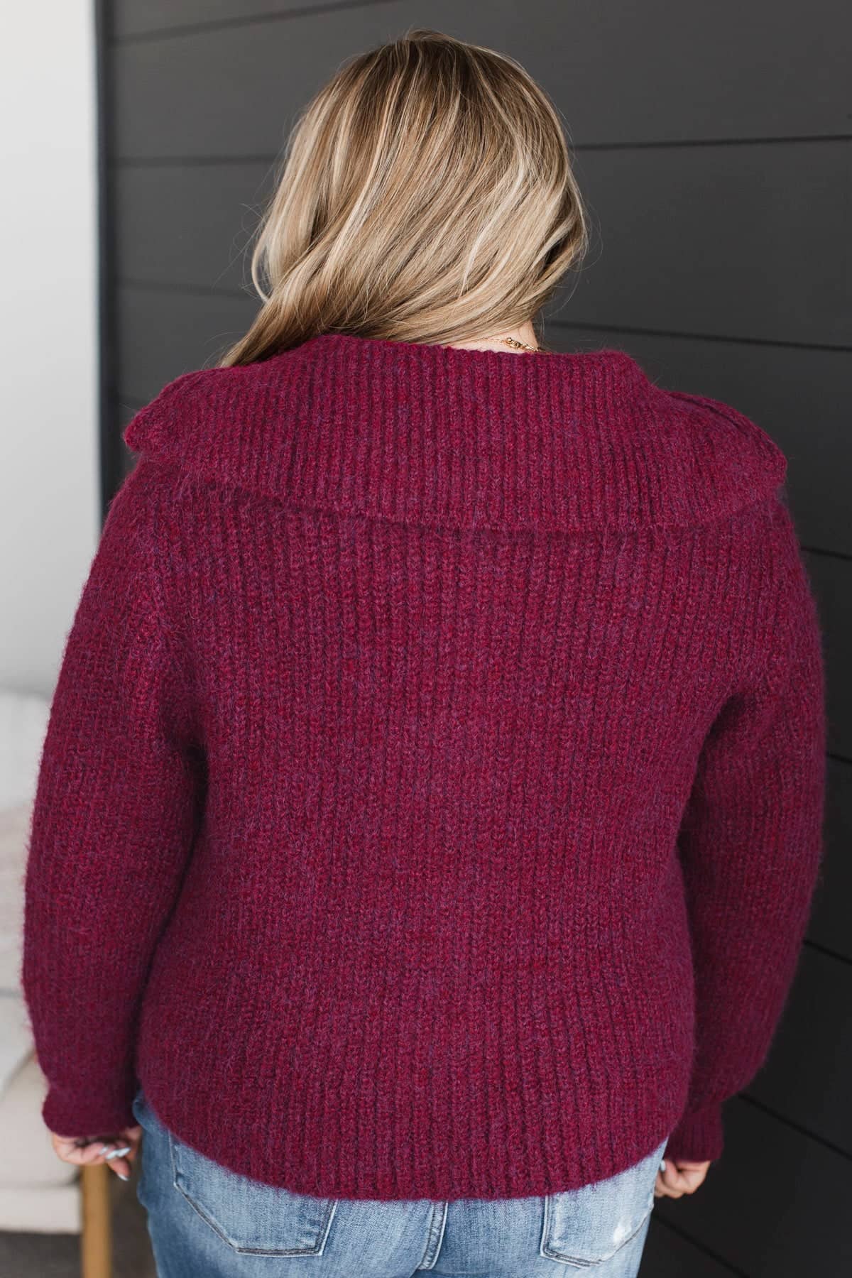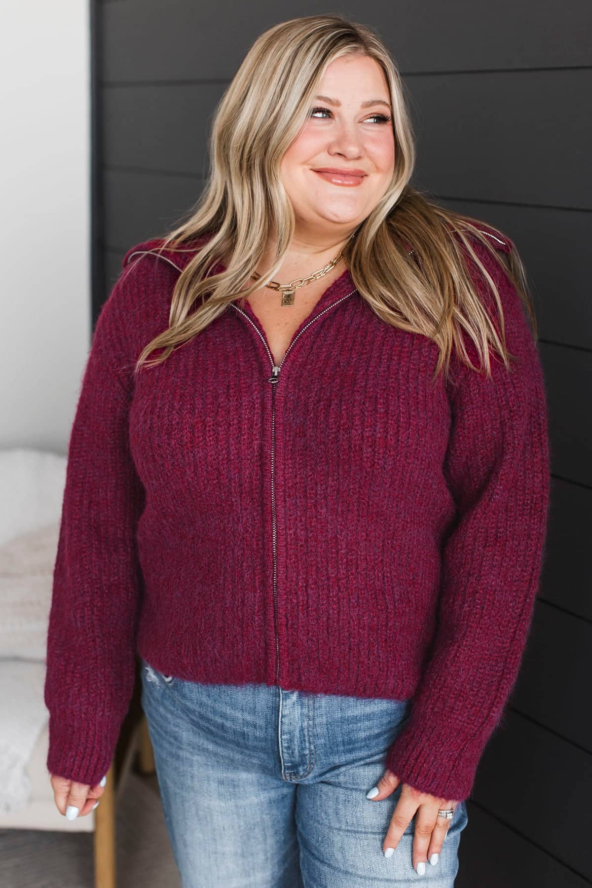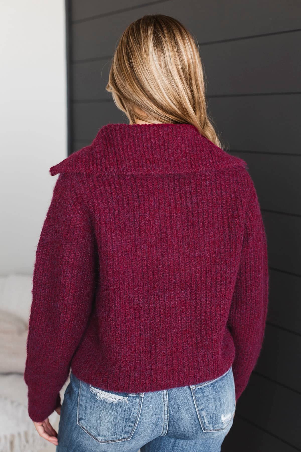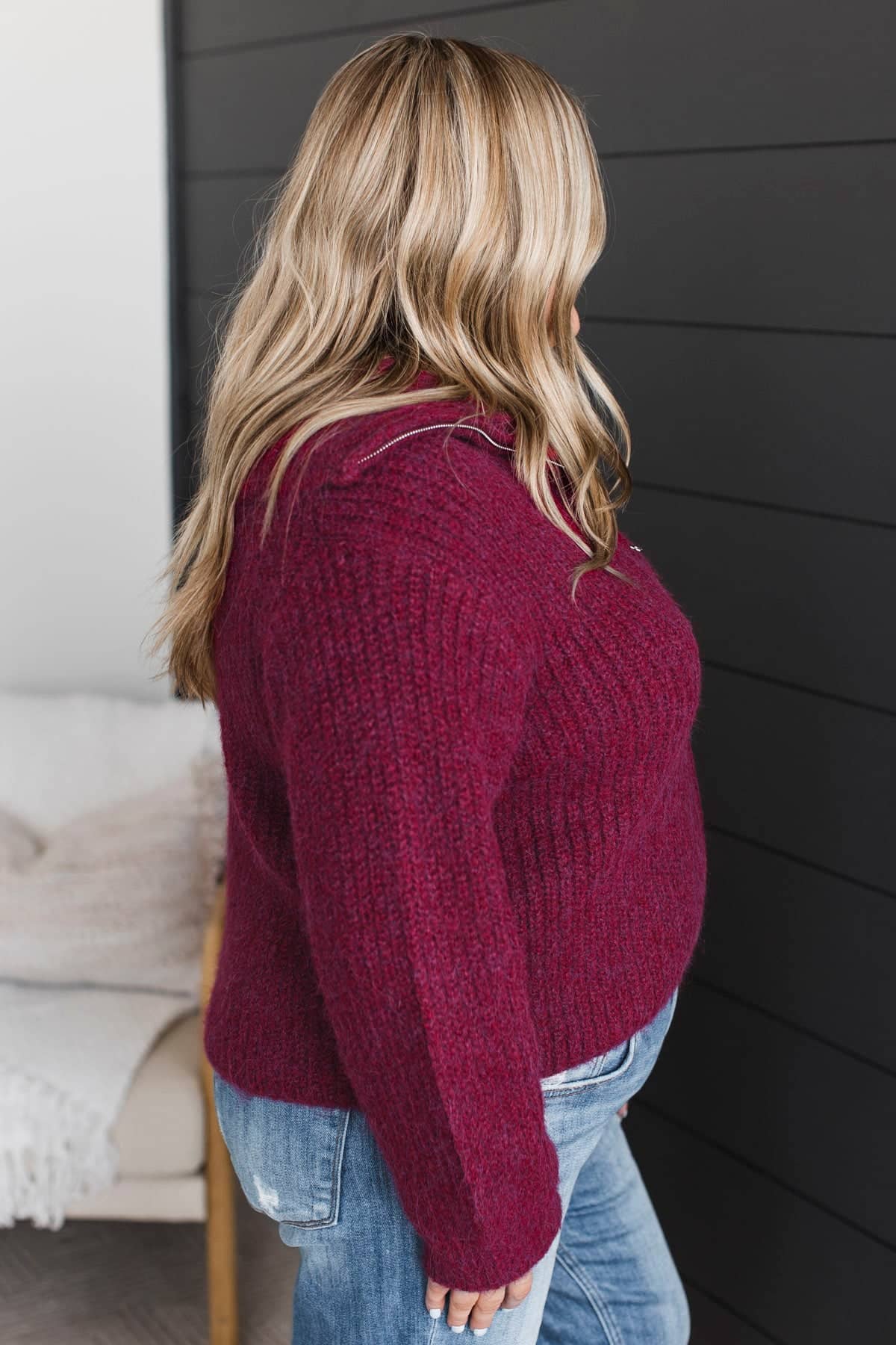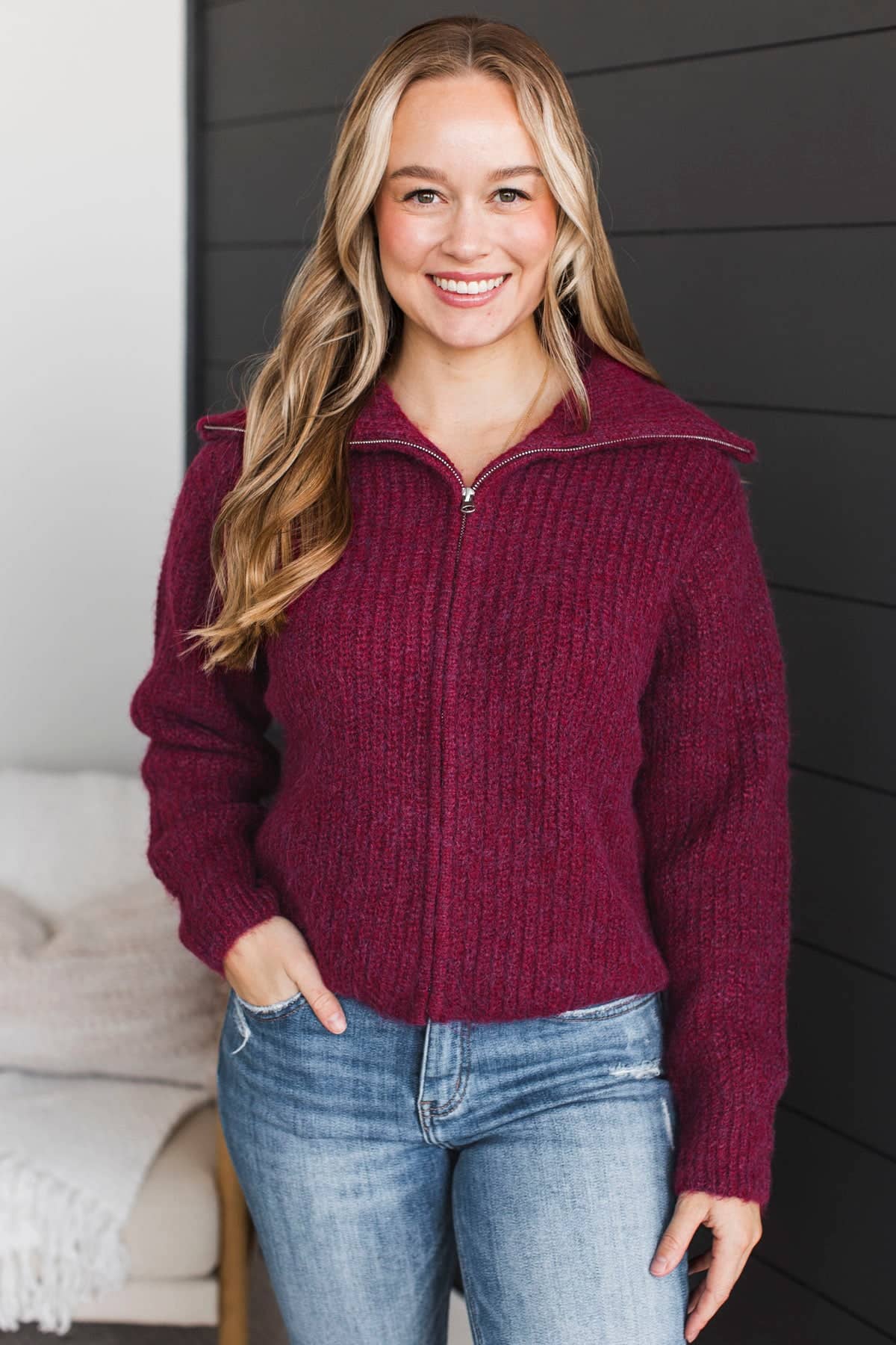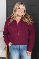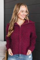 Think Cozy Zip Up Sweater- Wine