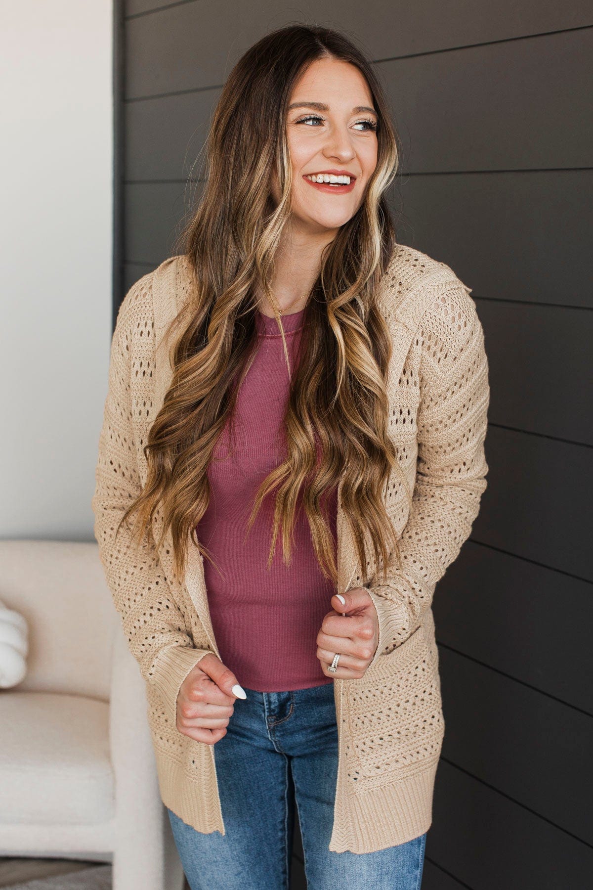 Outstanding Style Open Knit Cardigan- Natural