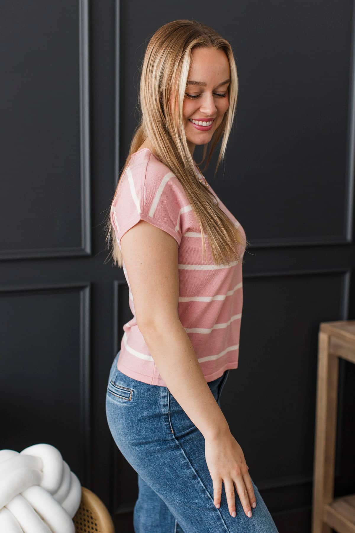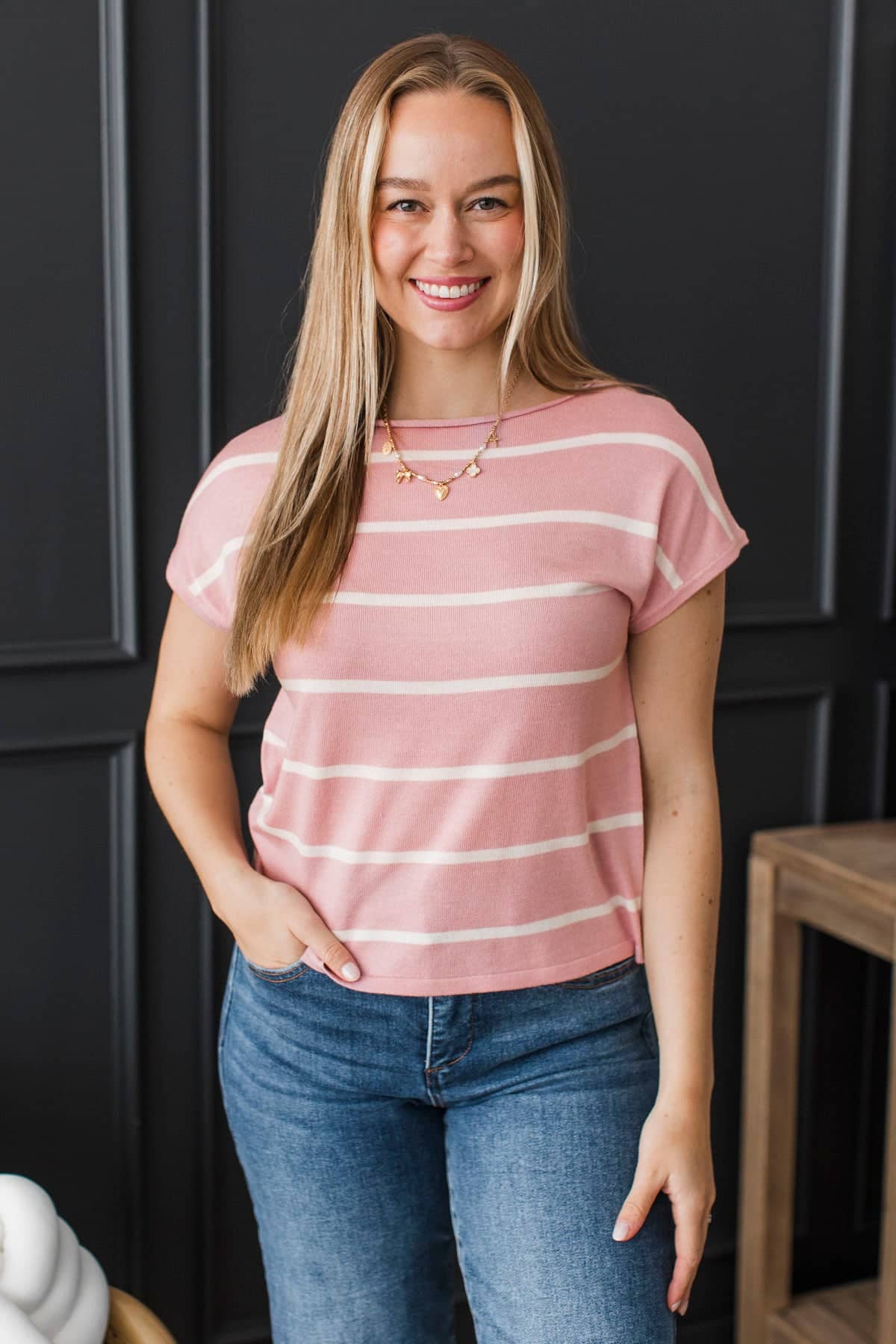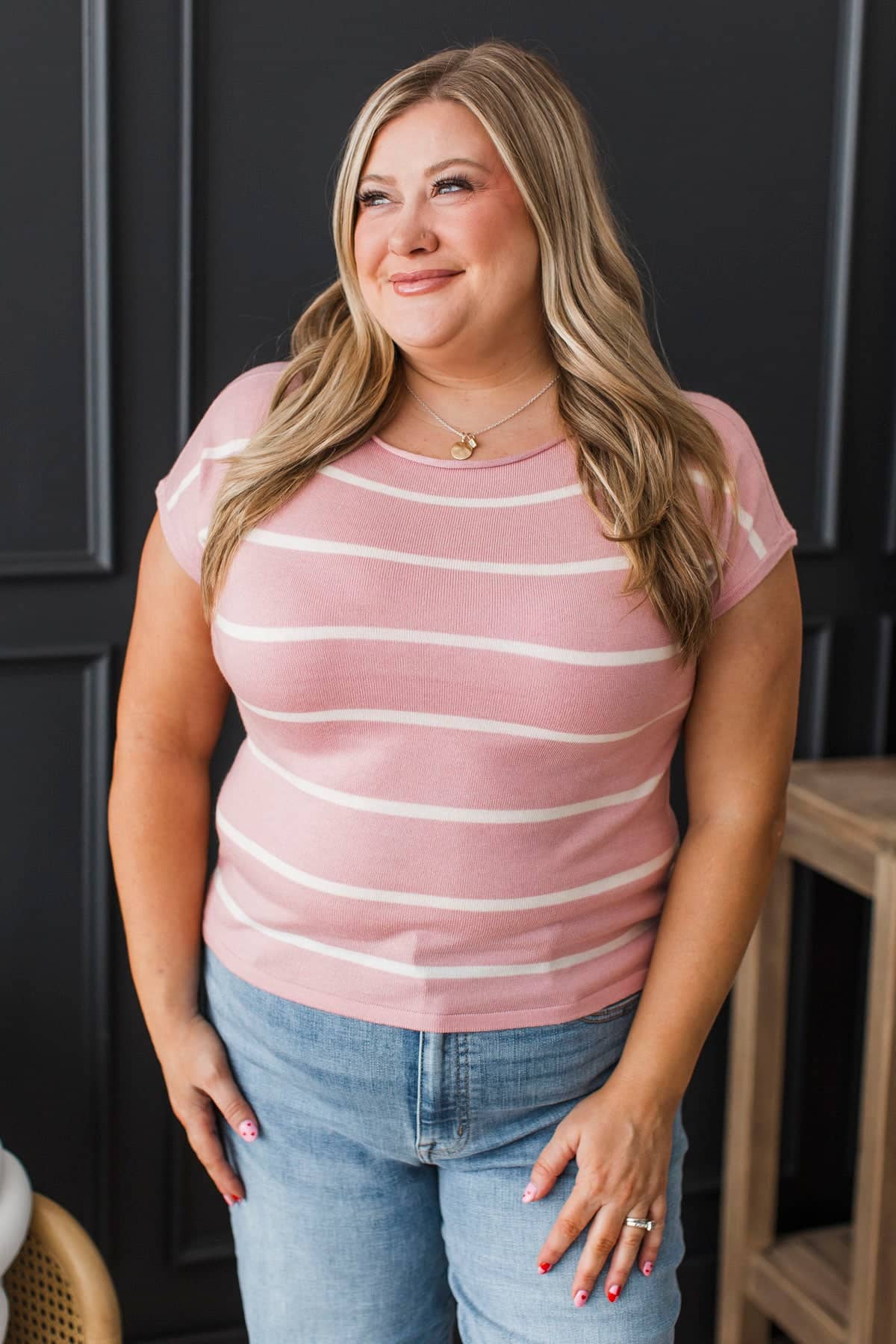 Unstoppable You Striped Knit Top- Dusty Pink