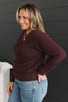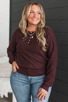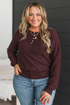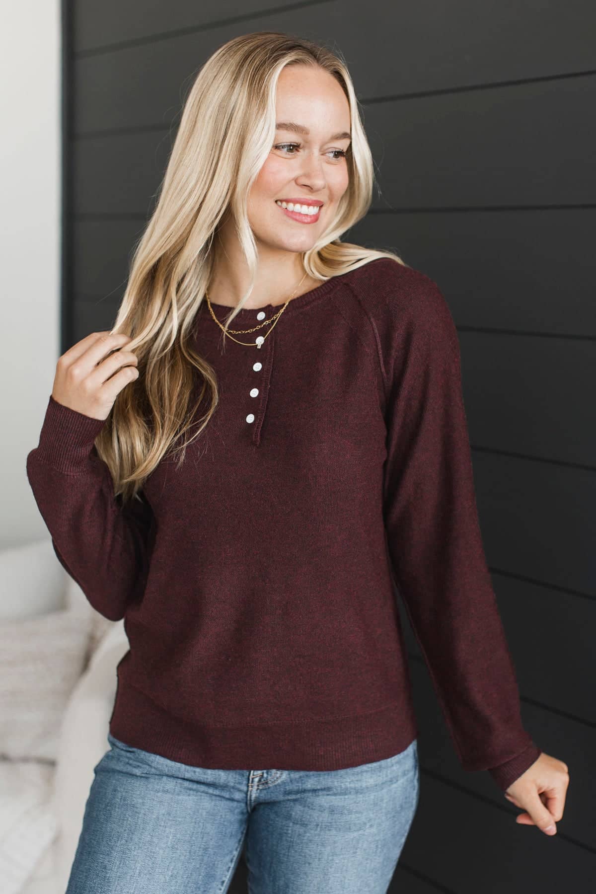 Warm Hearts Knit Henley Top- Dark Burgundy