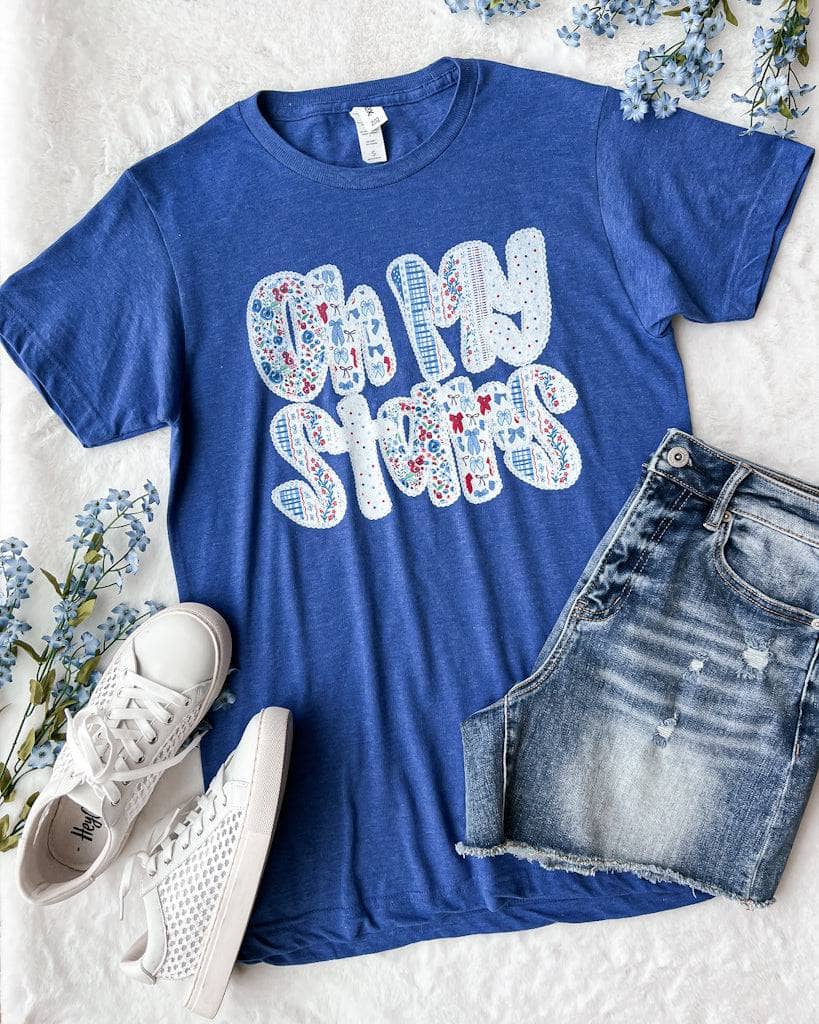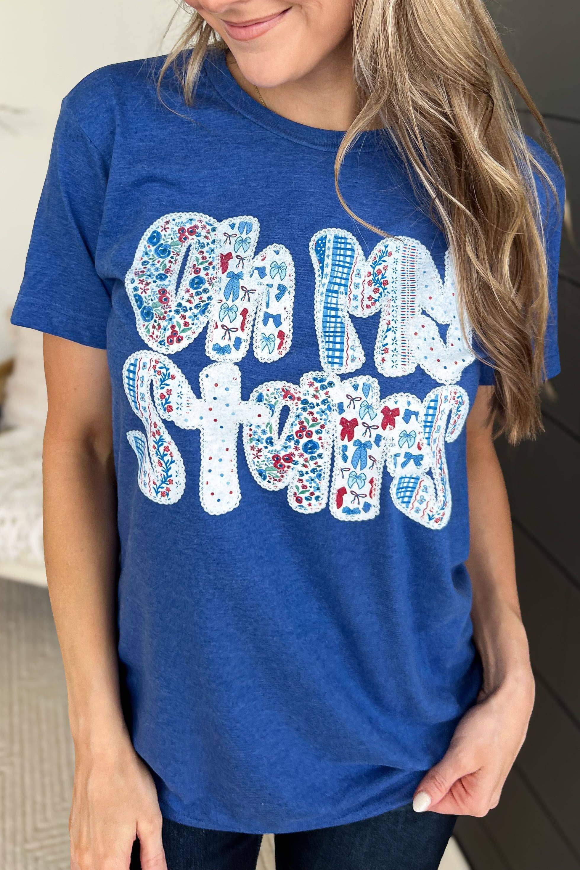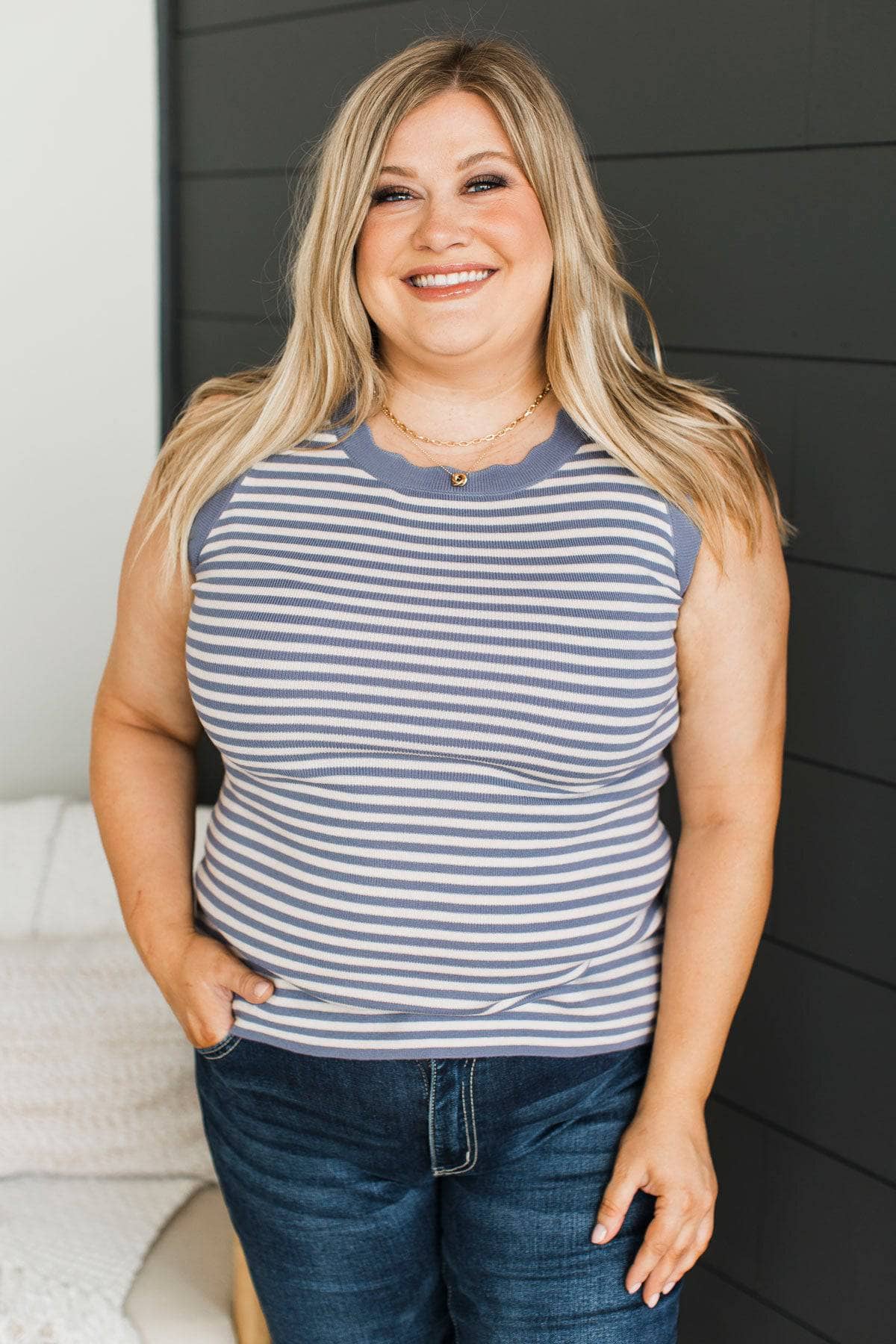 Heart On My Sleeve Striped Tank Top- Slate Blue