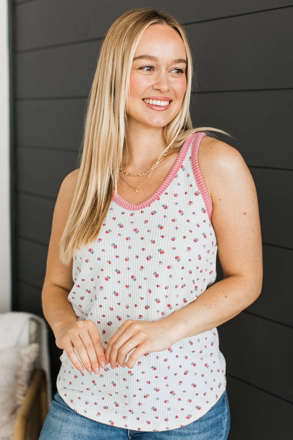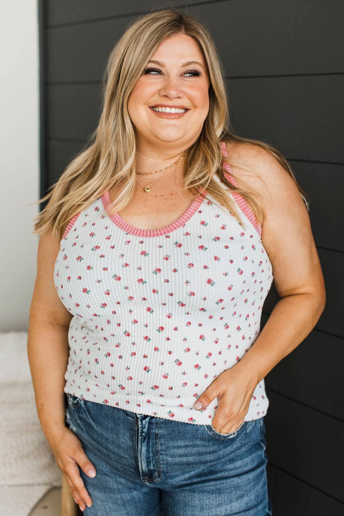 Fawn Over Me Floral Tank Top- Off-White & Pink