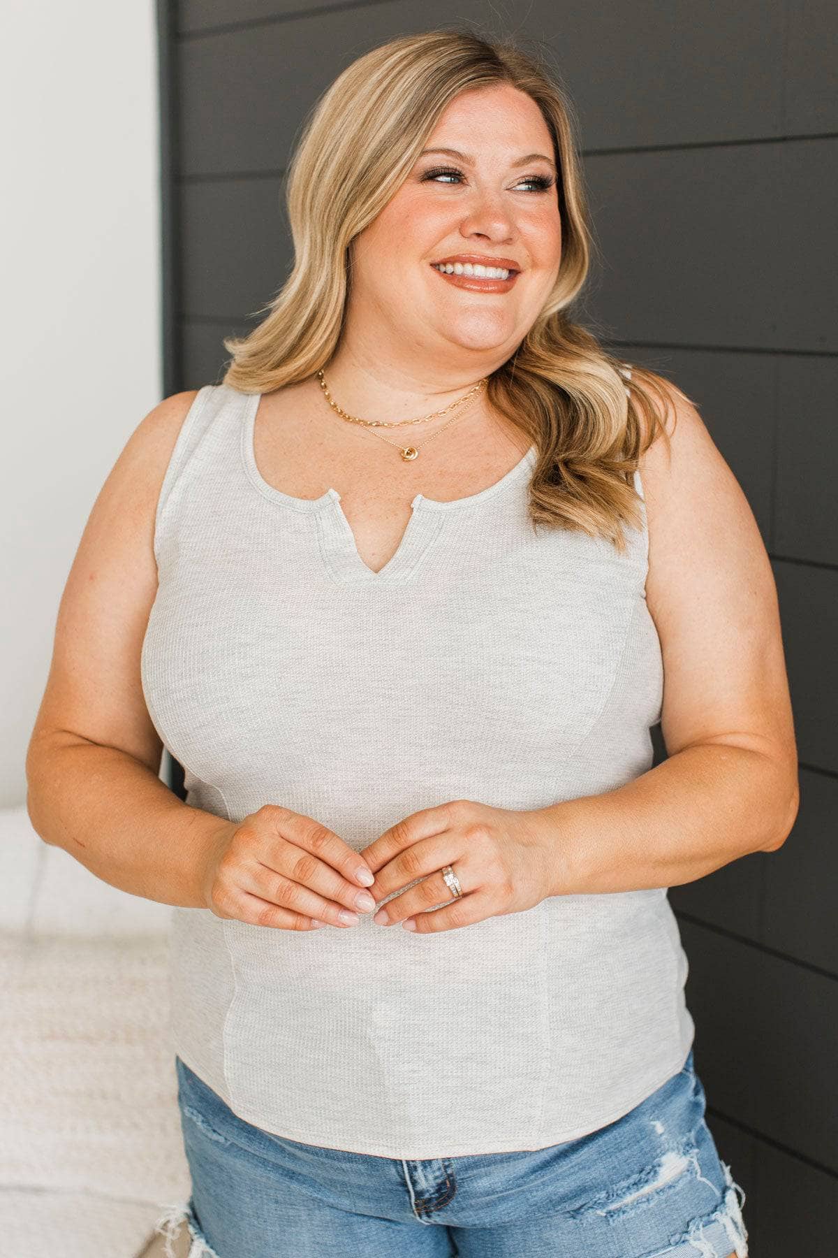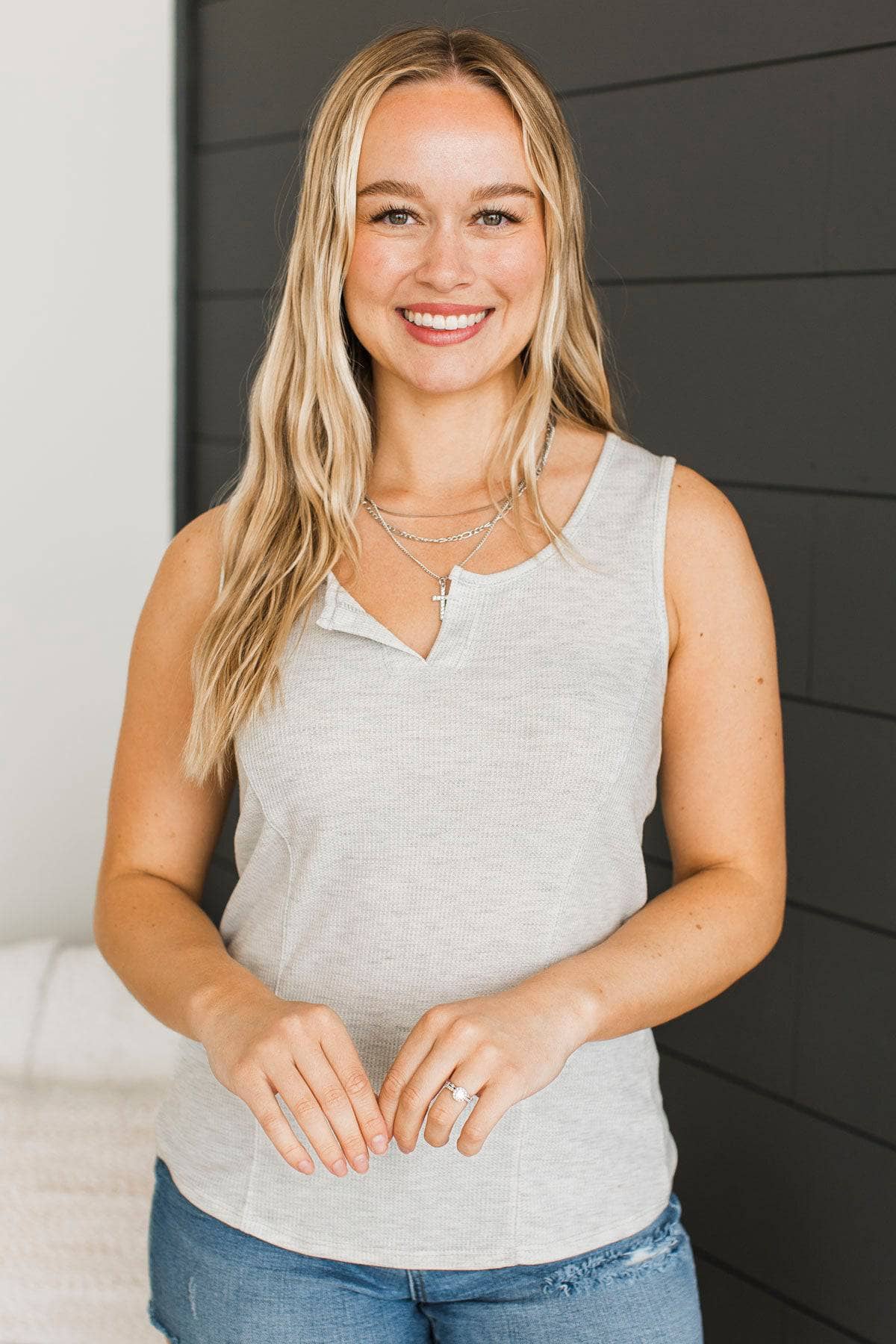 Surrounded By Love Knit Tank Top- Dusty Blue