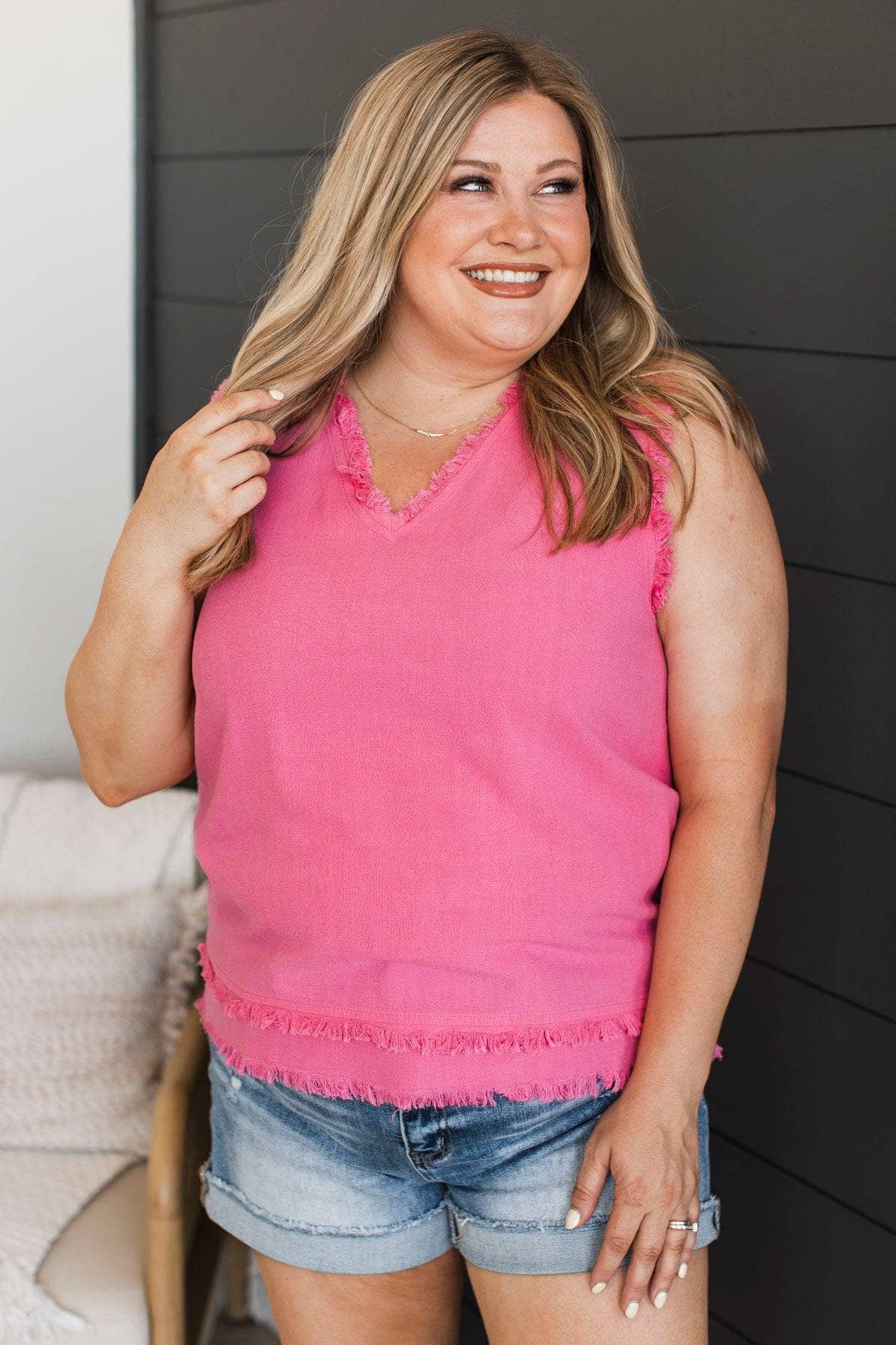 Take My Heart Frayed Tank Top- Bright Turquoise