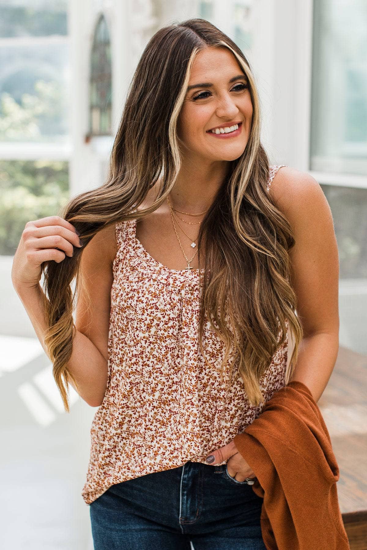 Welcoming Feelings Floral Tank Top- Linen & Pink
