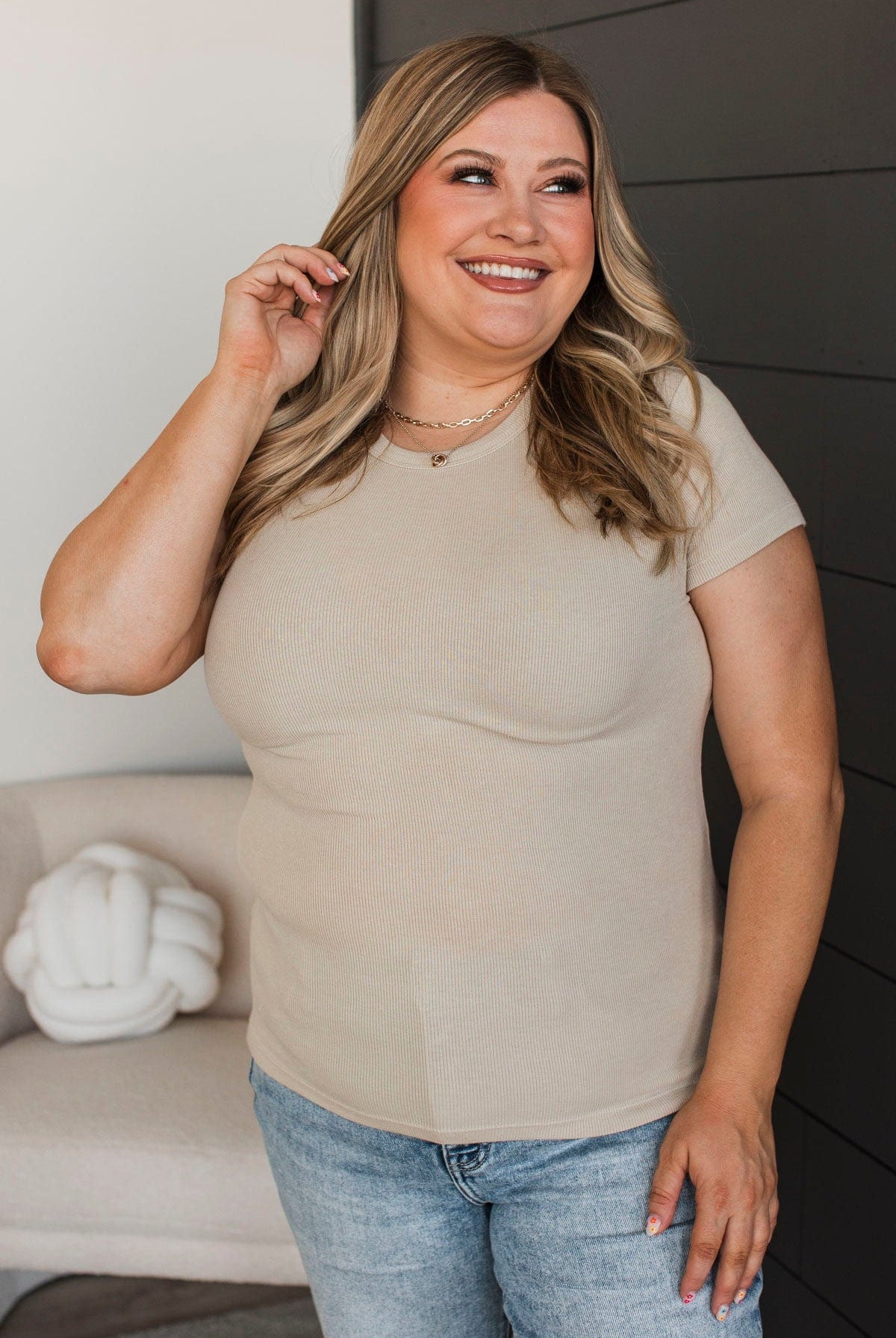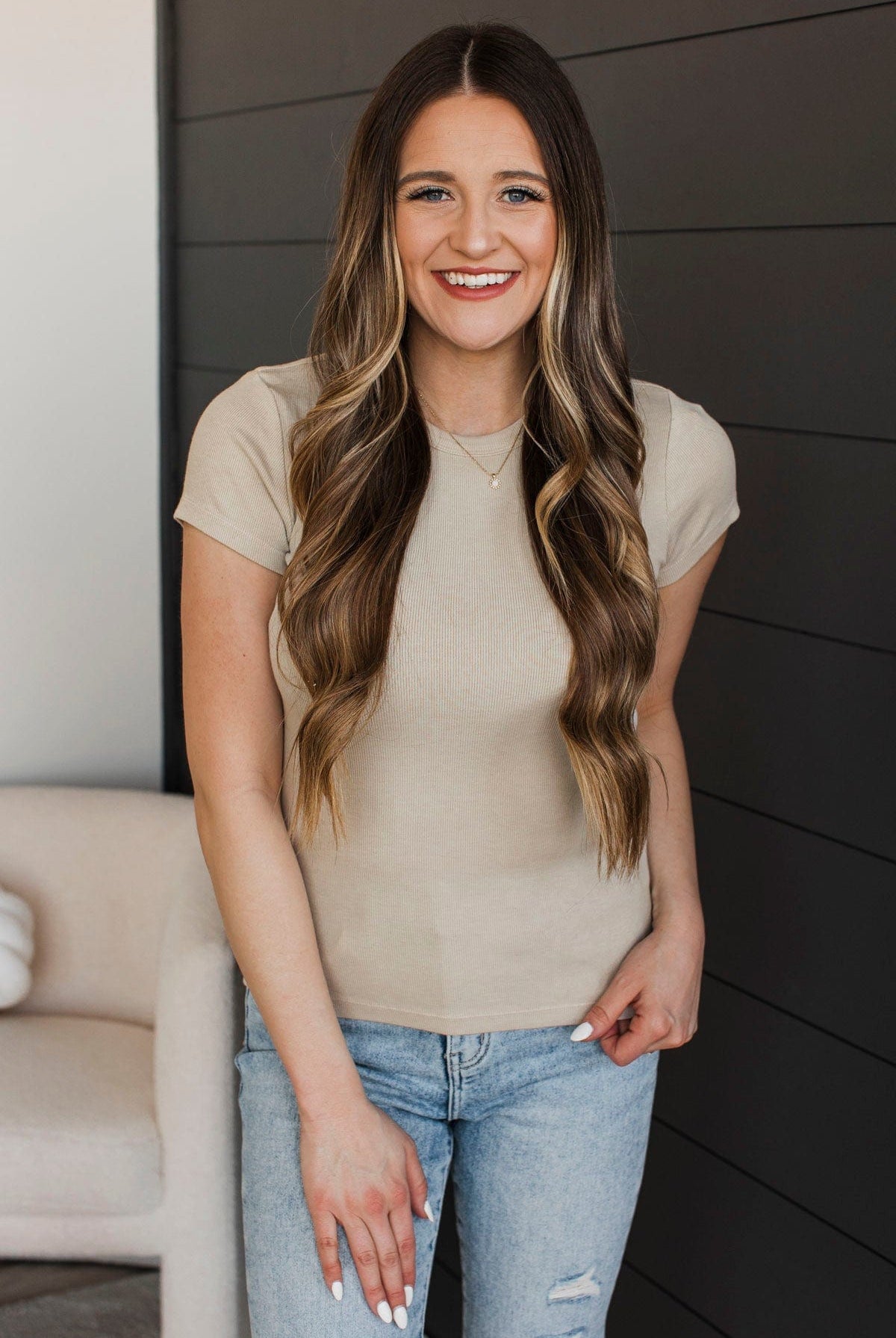 Remarkably Good Short Sleeve Ribbed Top- Mocha