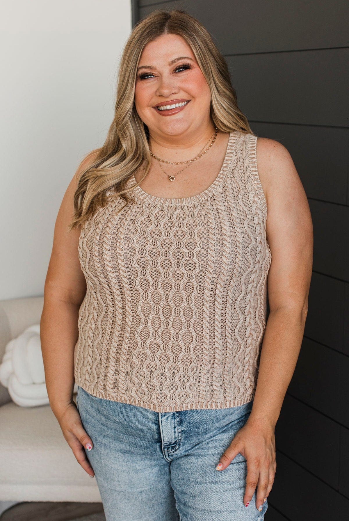 Living Carefree Cable Knit Tank Top- Oatmeal