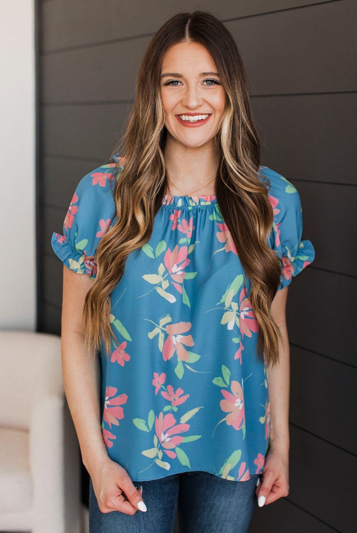 Feels Like A Fairytale Floral Top- Ivory & Coral
