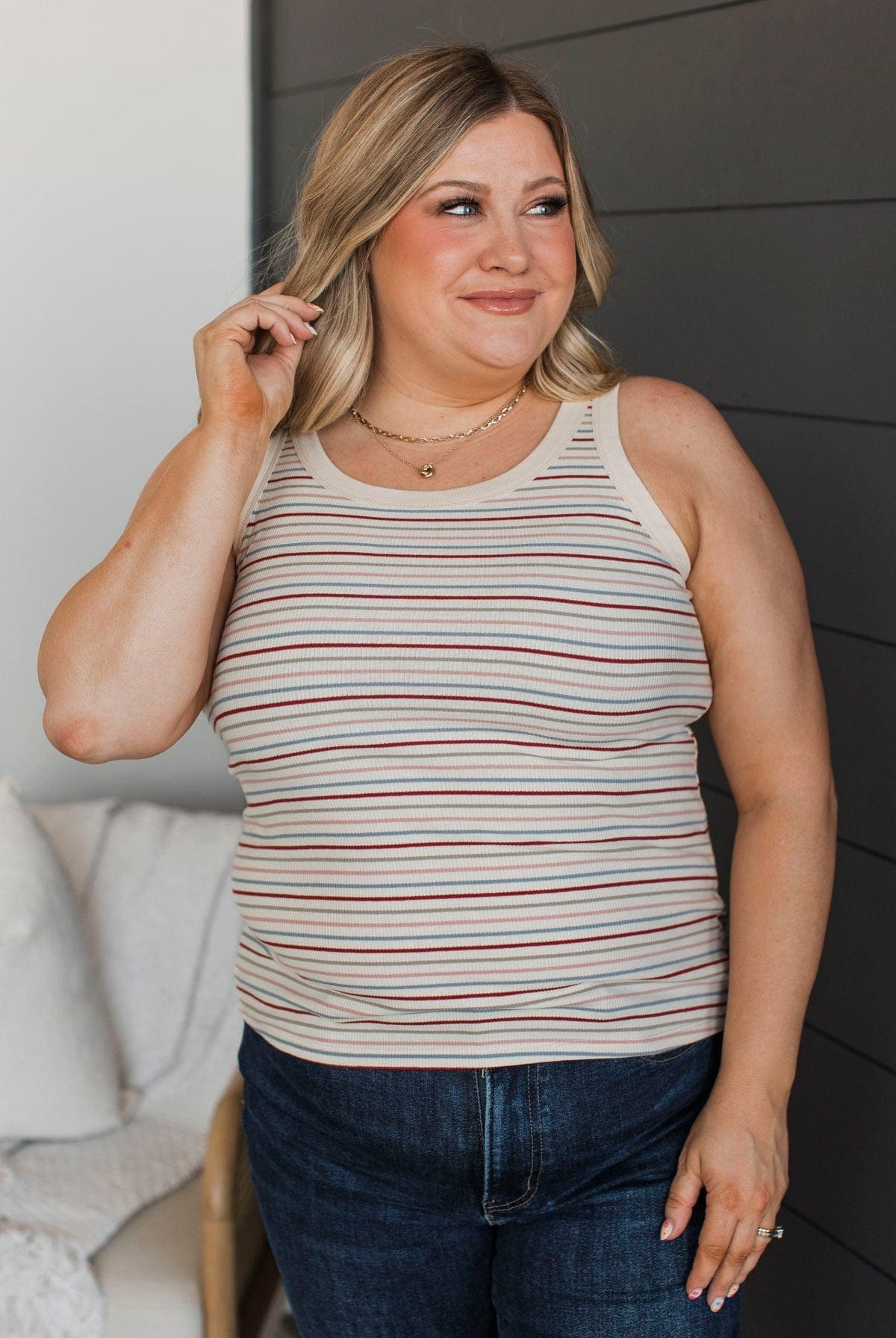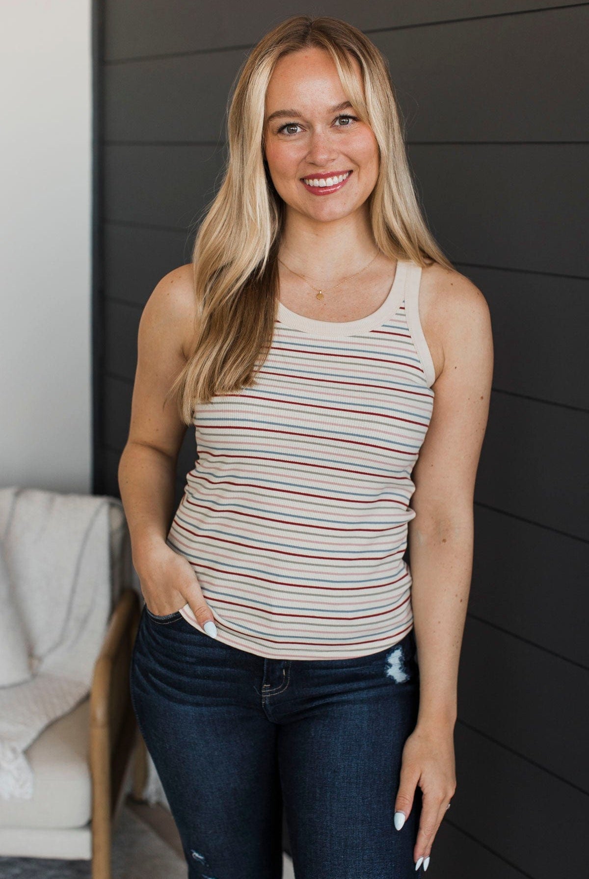 Lasting Fun Striped Tank Top- Cream & Red Multi