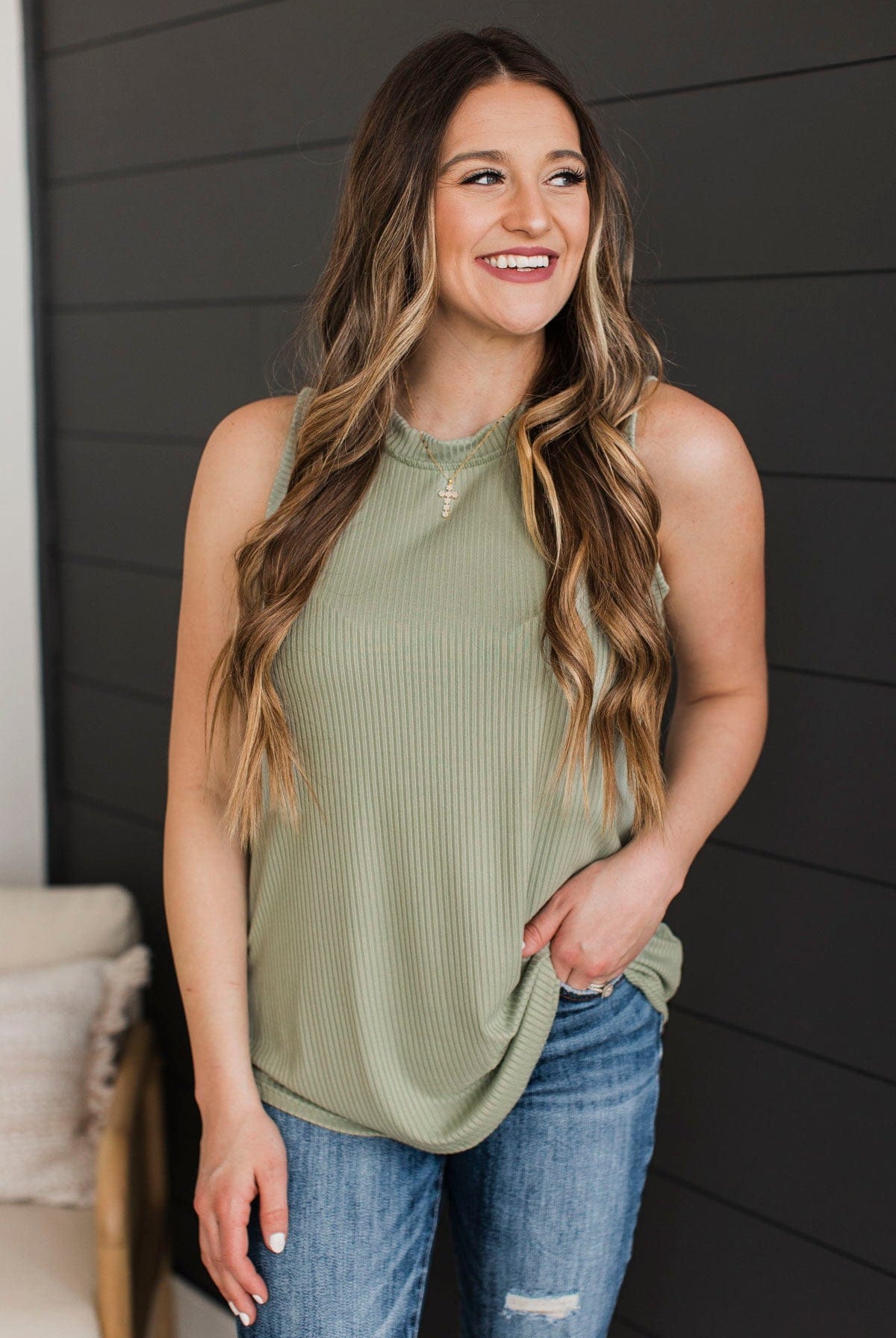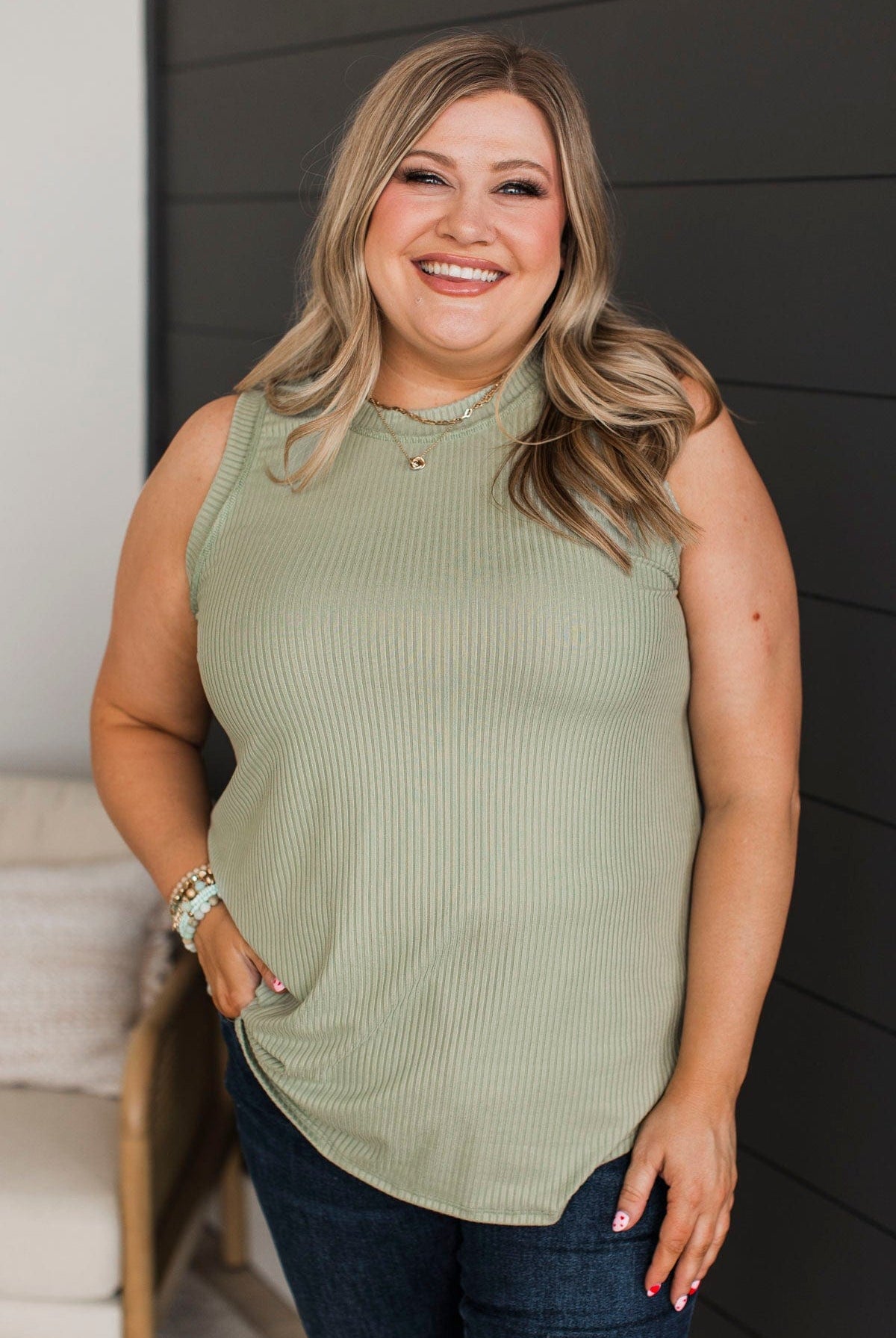 Impressive Endeavors Ribbed Tank Top- Sage
