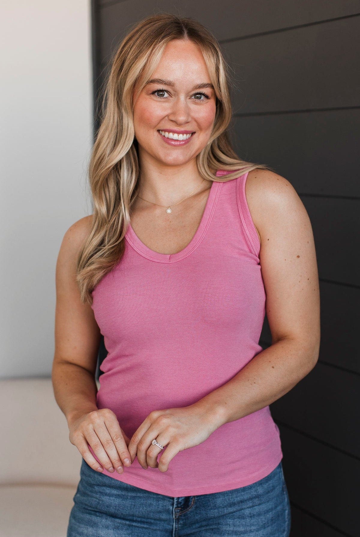 Love Your Vibe V-Neck Tank Top- Pink