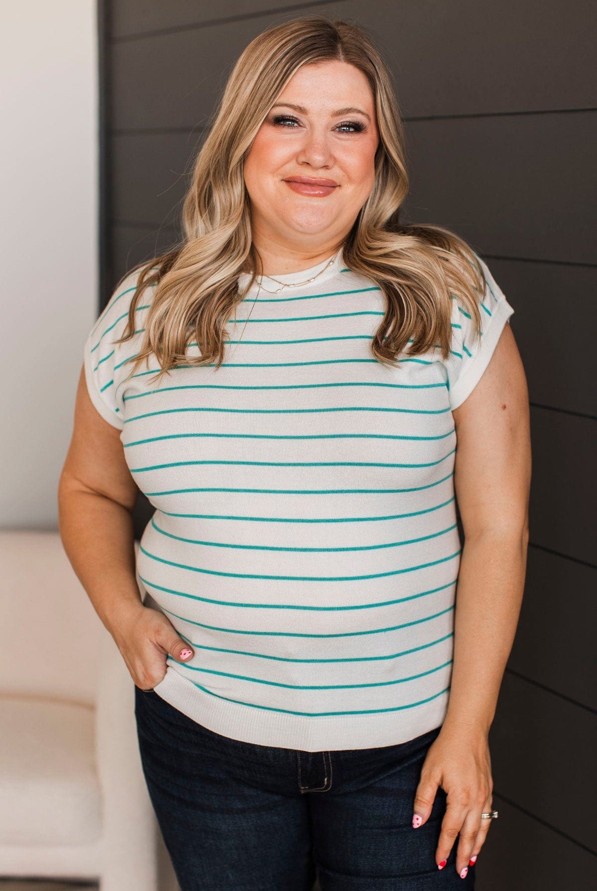 All About Simplicity Striped Top- Ivory & Dusty Mint
