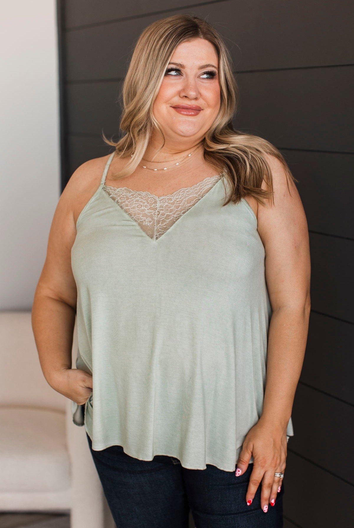 Reaching For the Moon Tank Top- Dusty Sage