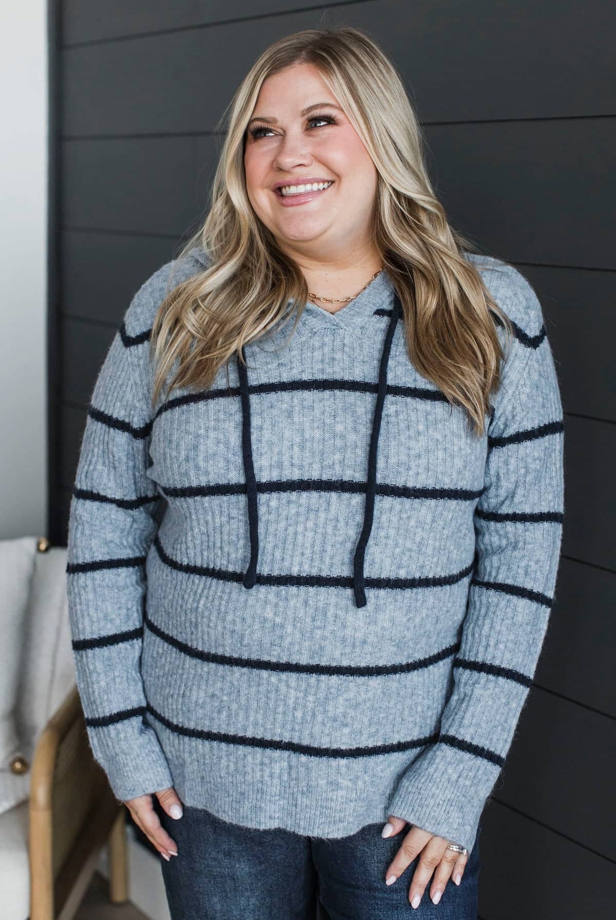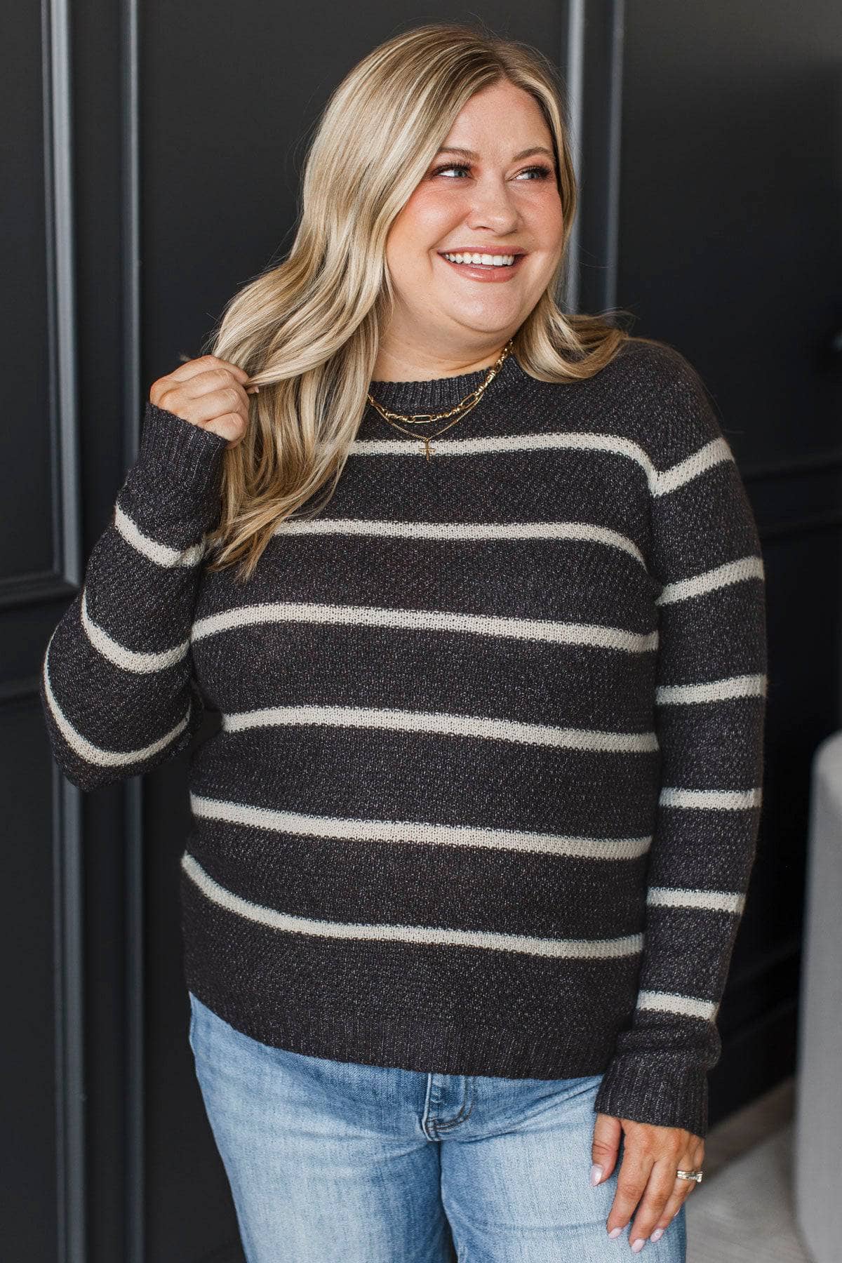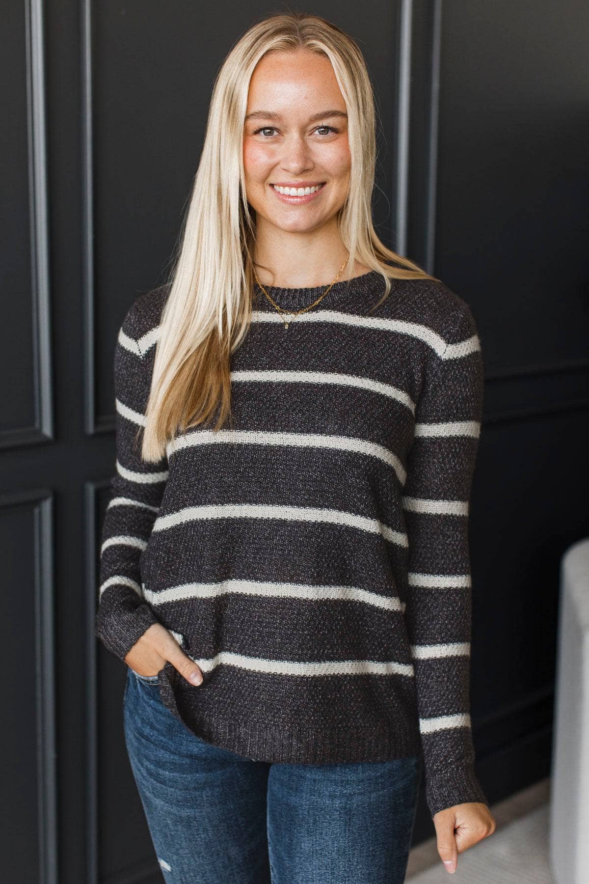 Everyday Miracles Striped Knit Sweater- Dark Charcoal