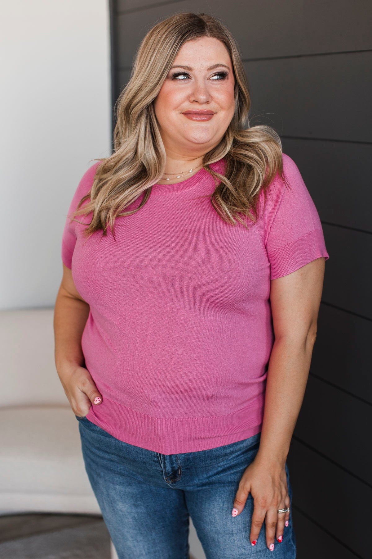Call The Shots Knit Top- Hot Pink