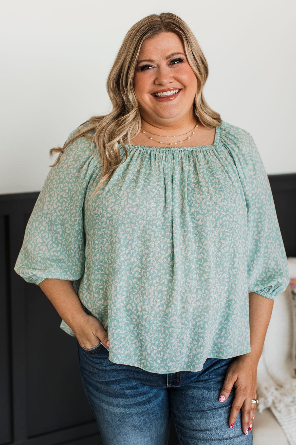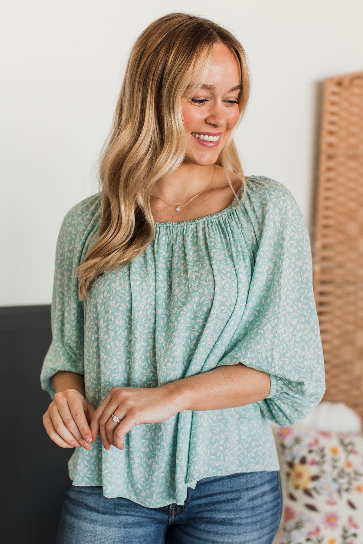 Enjoy Every Day Floral Top- Sage