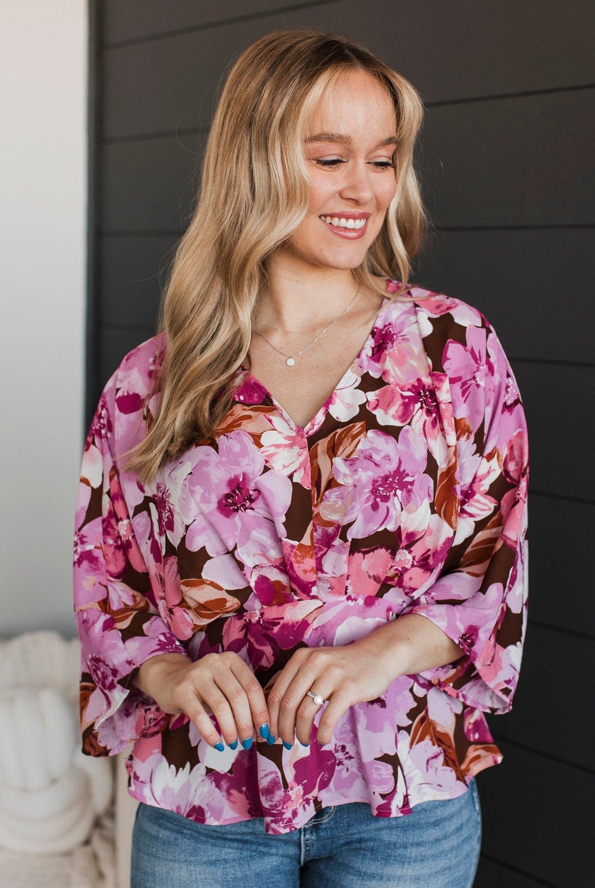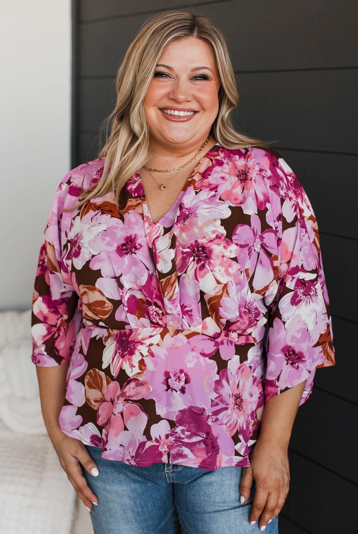 Extraordinary Feelings Floral Peplum Blouse- Brown & Pink