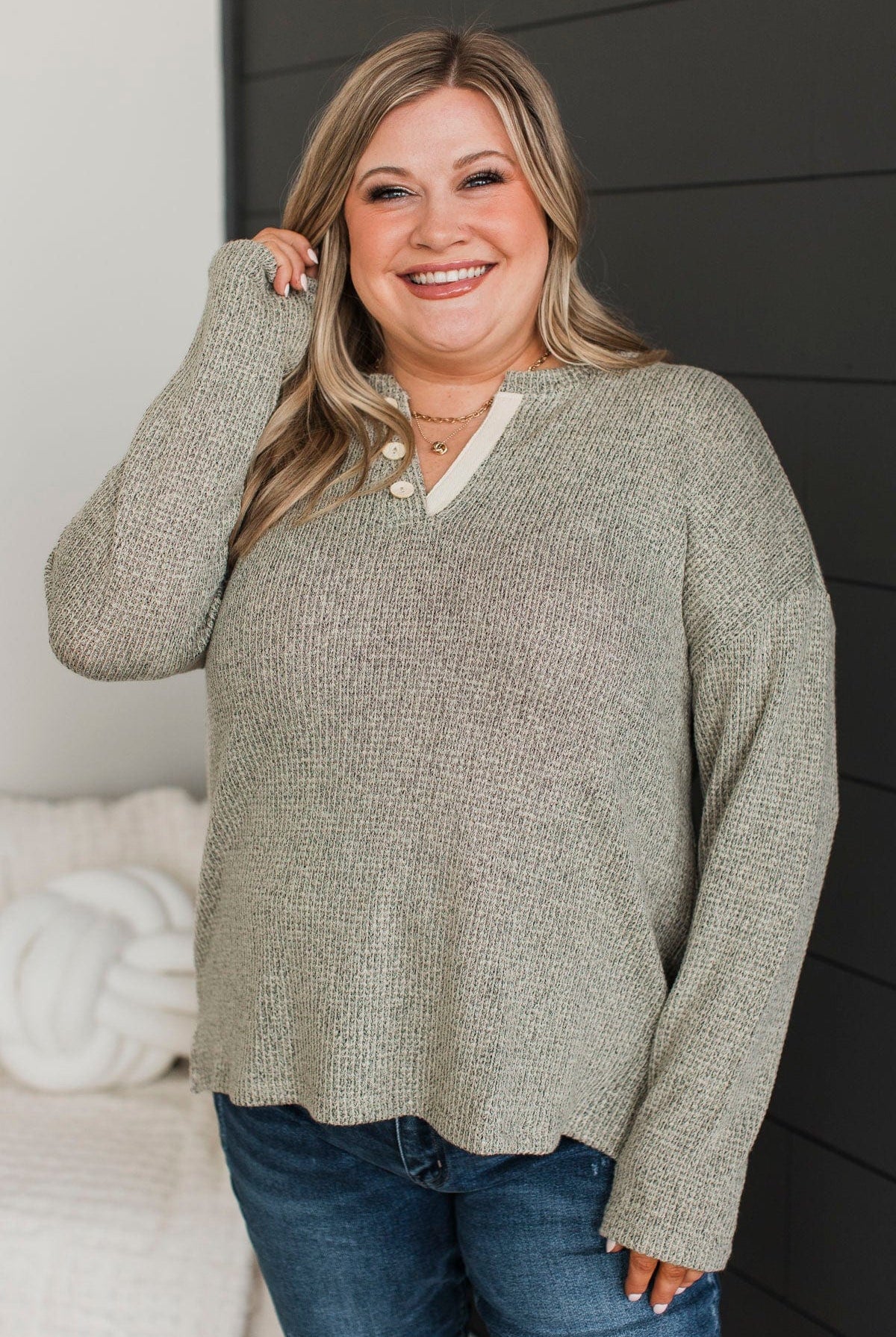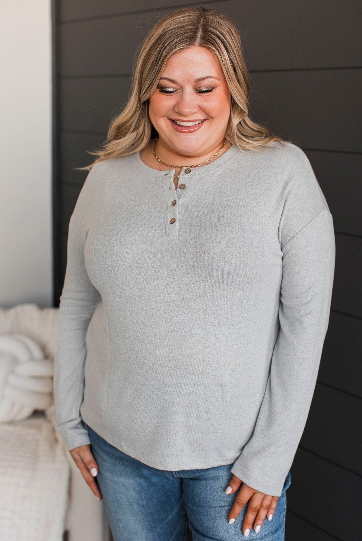 Incredible Timing Long Sleeve Henley Top- Heather Grey