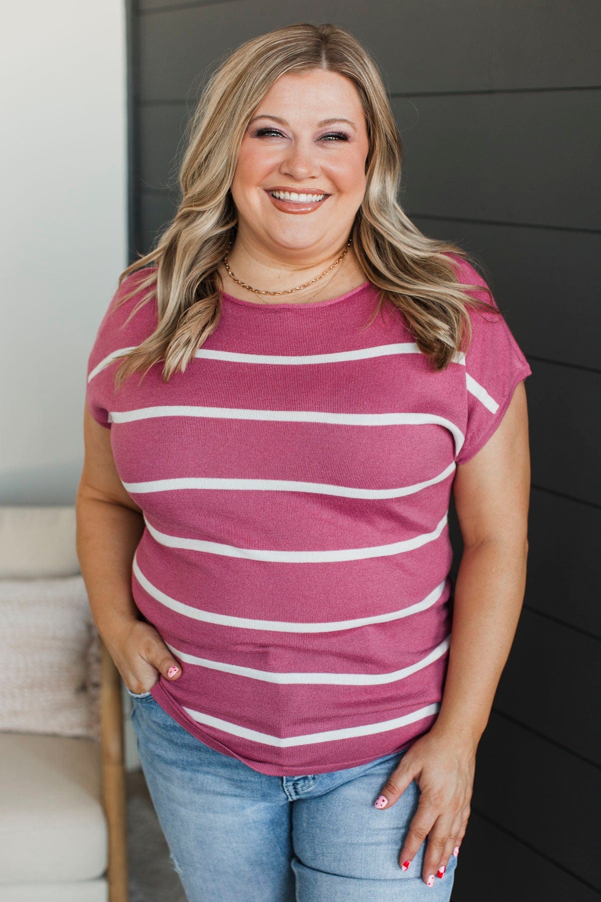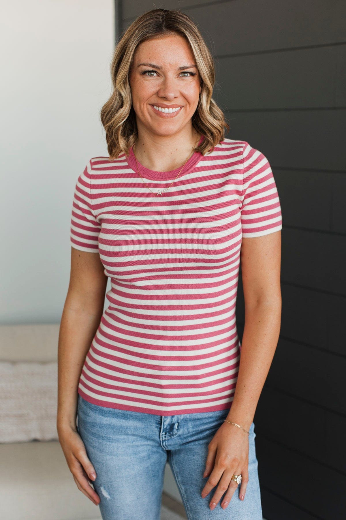 Positive Affirmations Striped Knit Top- Rose