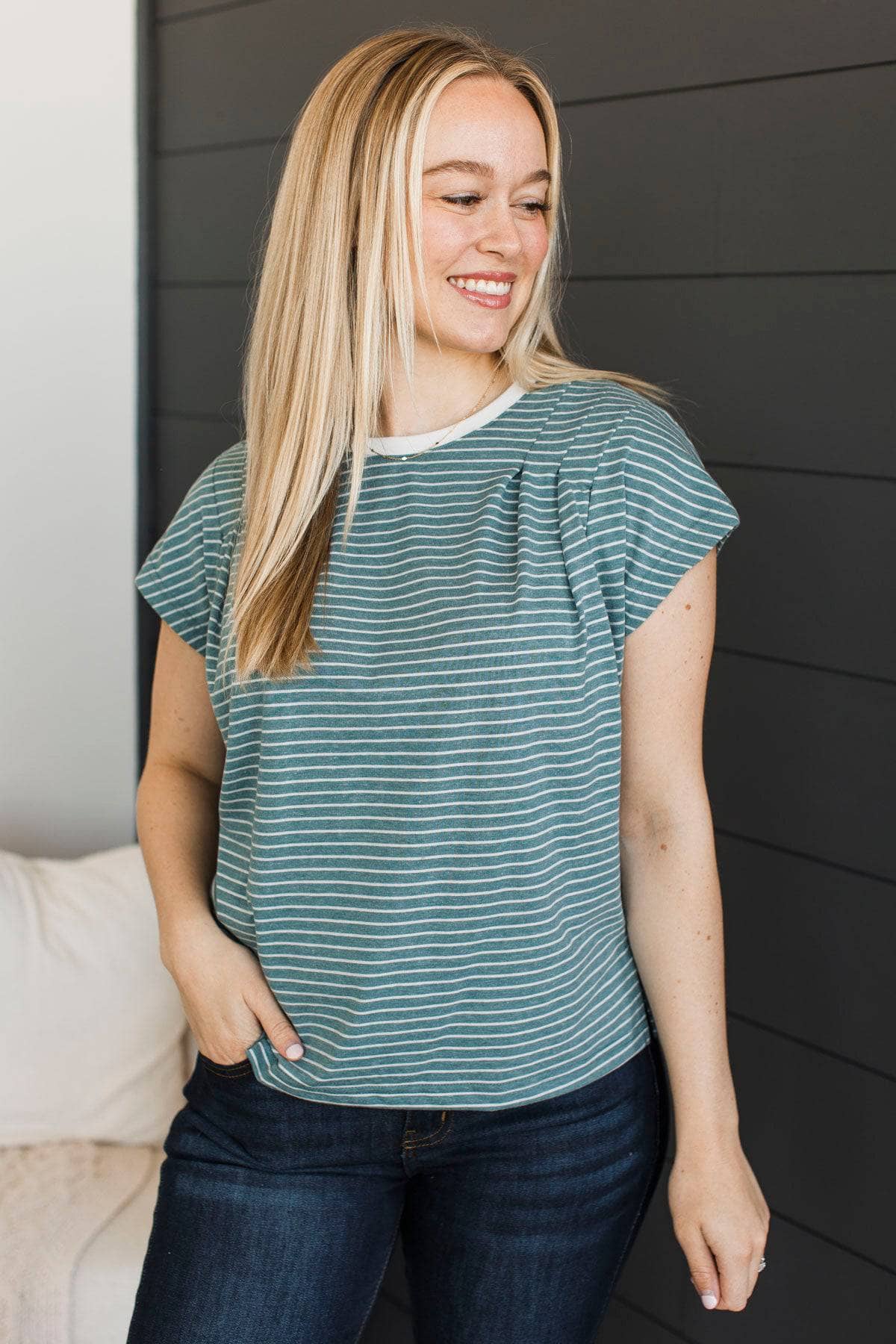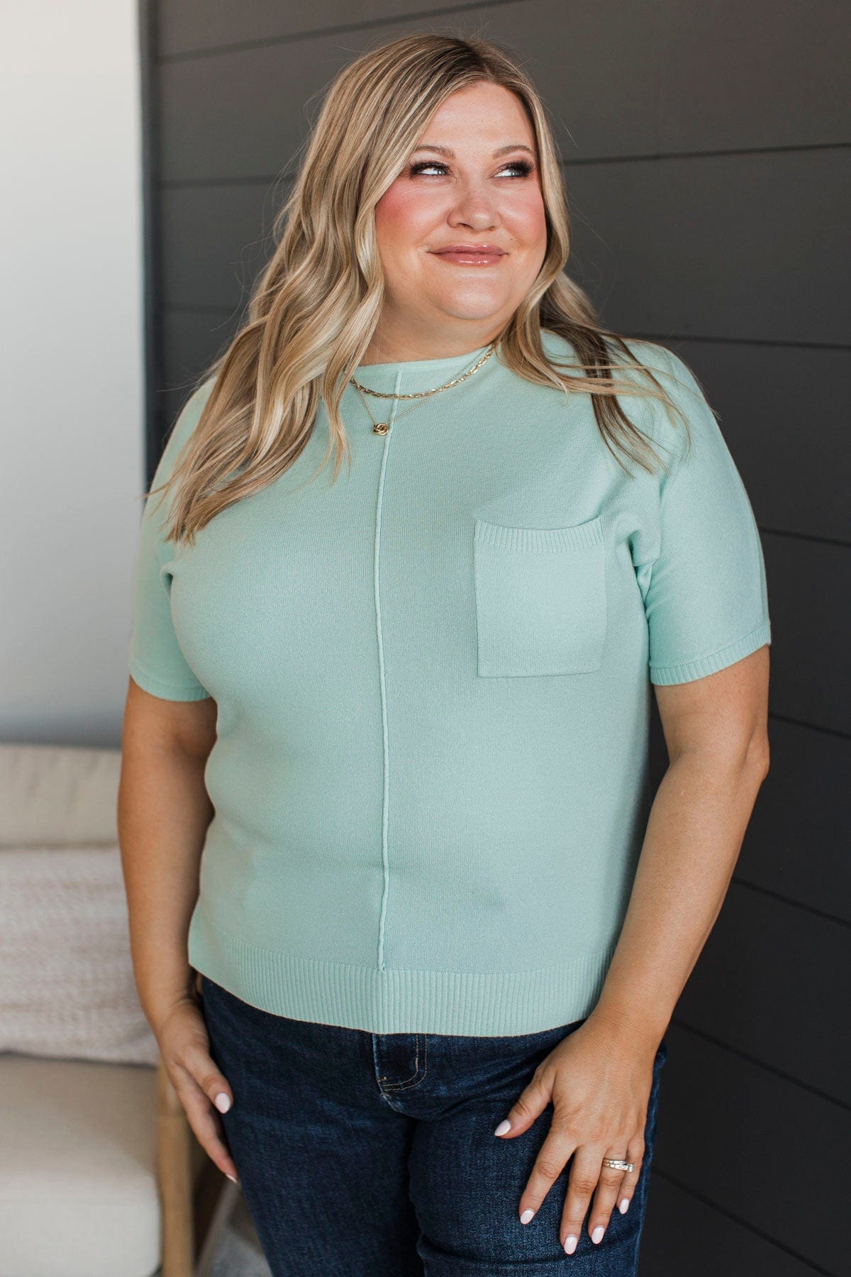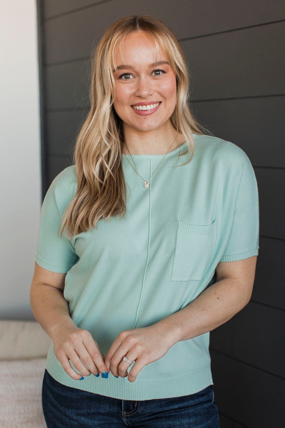 The Fairest Of Them All Pocket Top- Dusty Mint