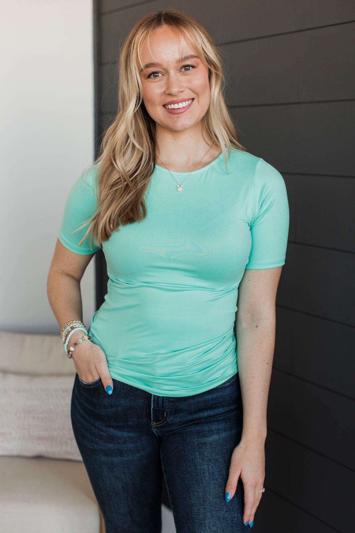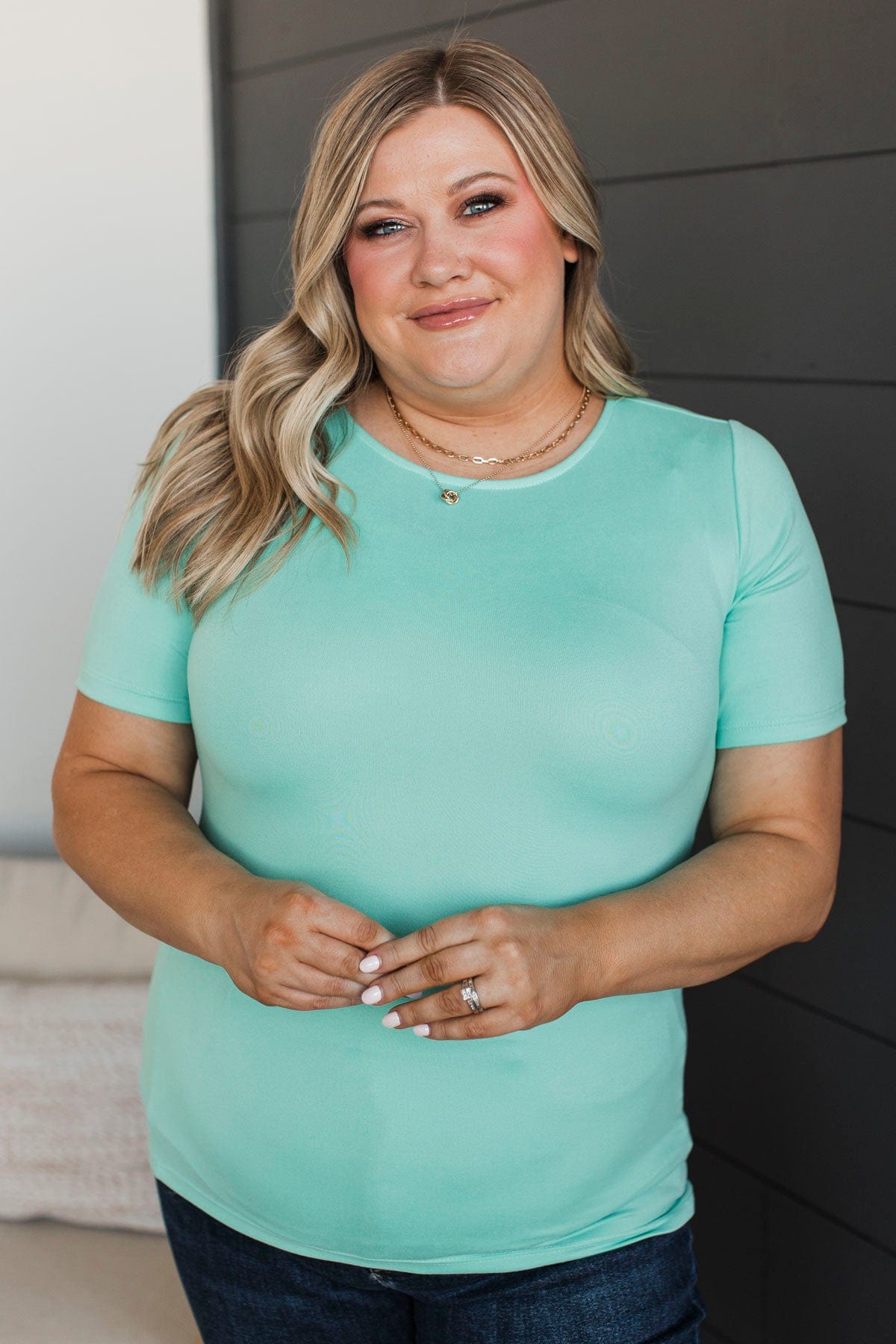 Daily Comforts Short Sleeve Top- Mint Blue