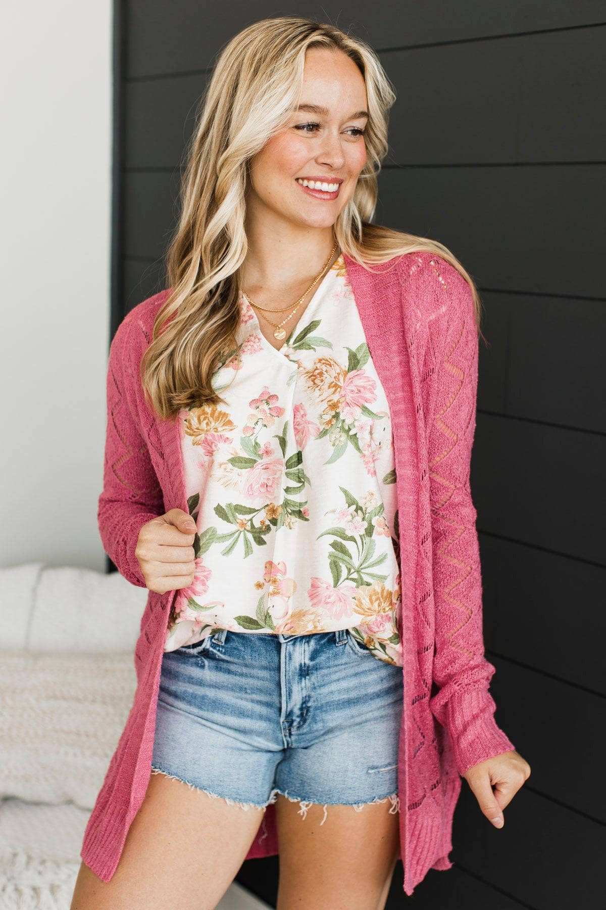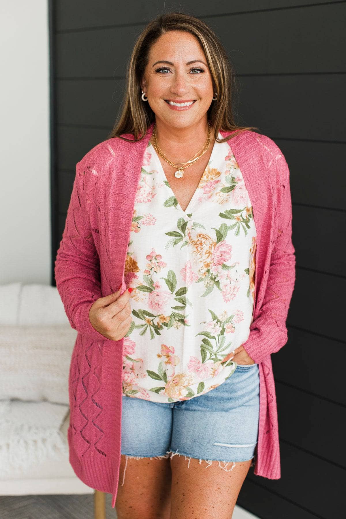 Effortless Perfection Pointelle Cardigan- Dark Bubblegum Pink