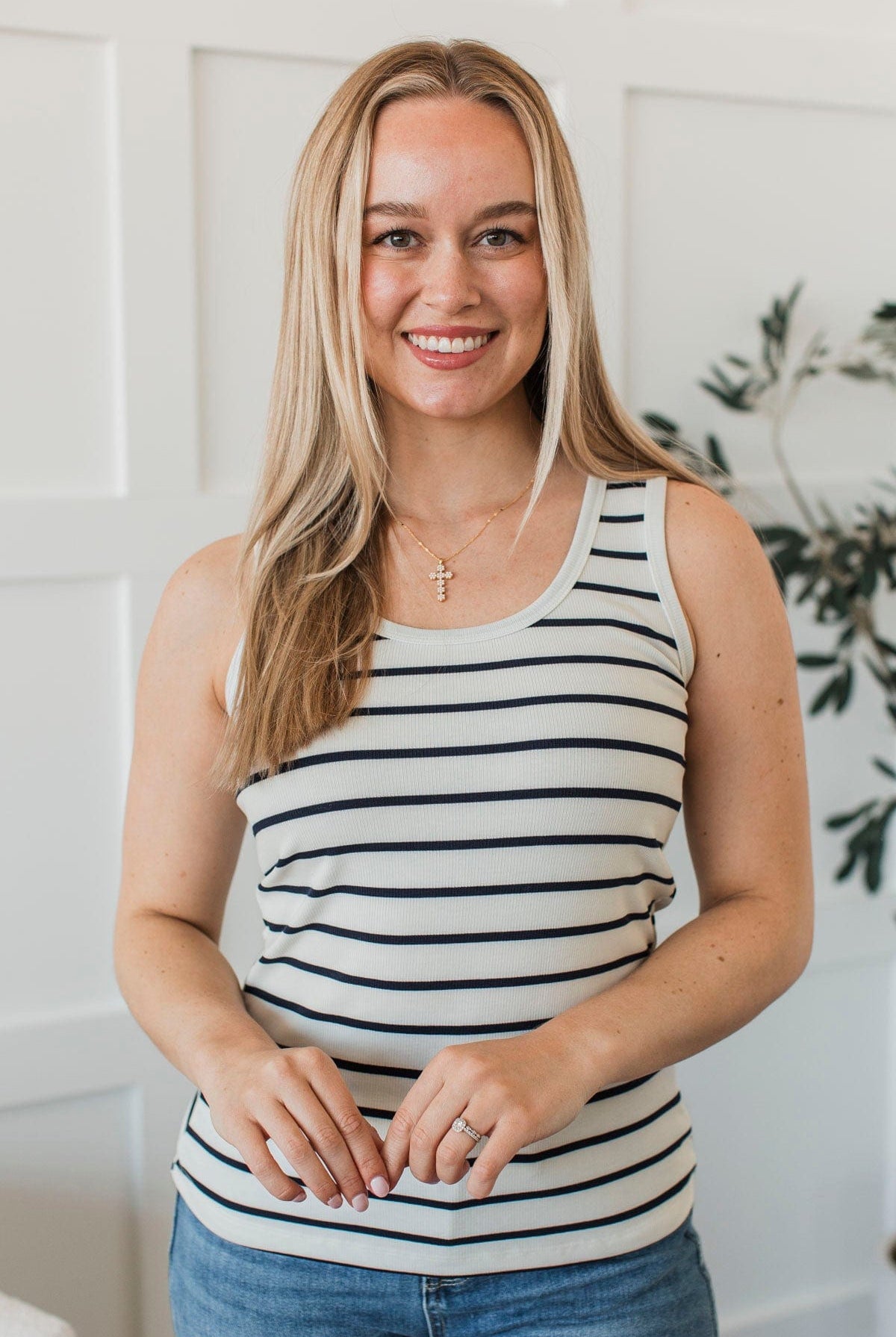 Alluring Presence Striped Tank Top- Ivory & Navy