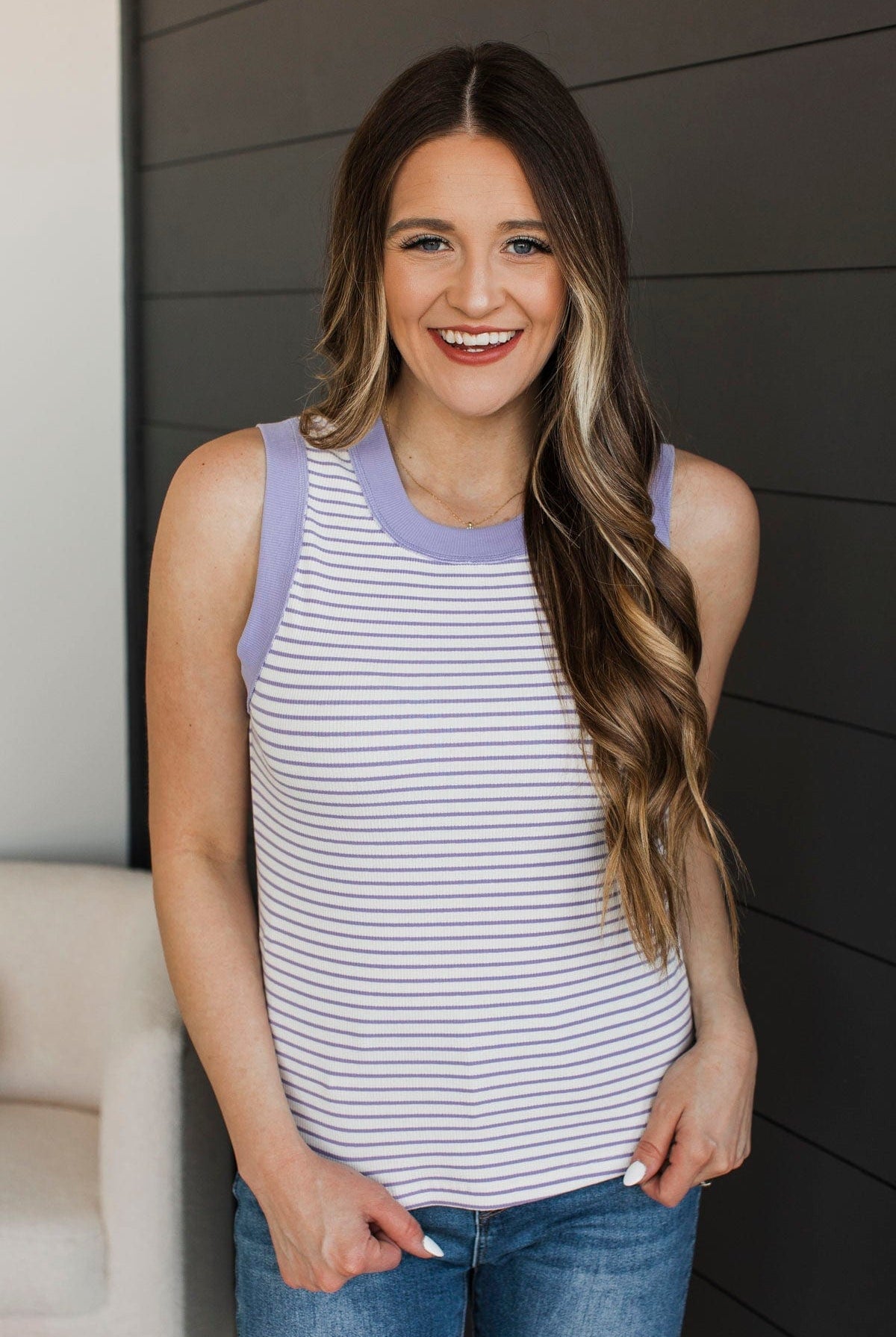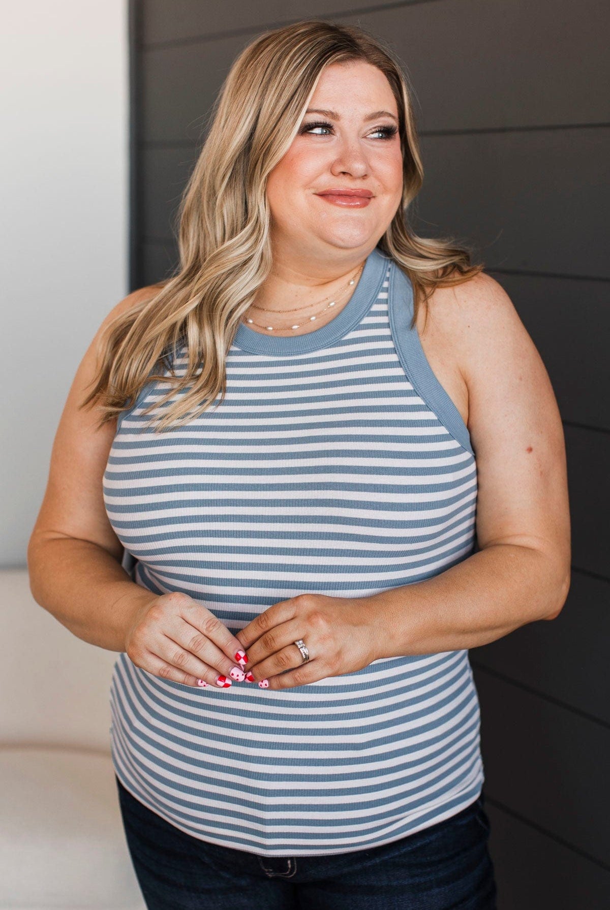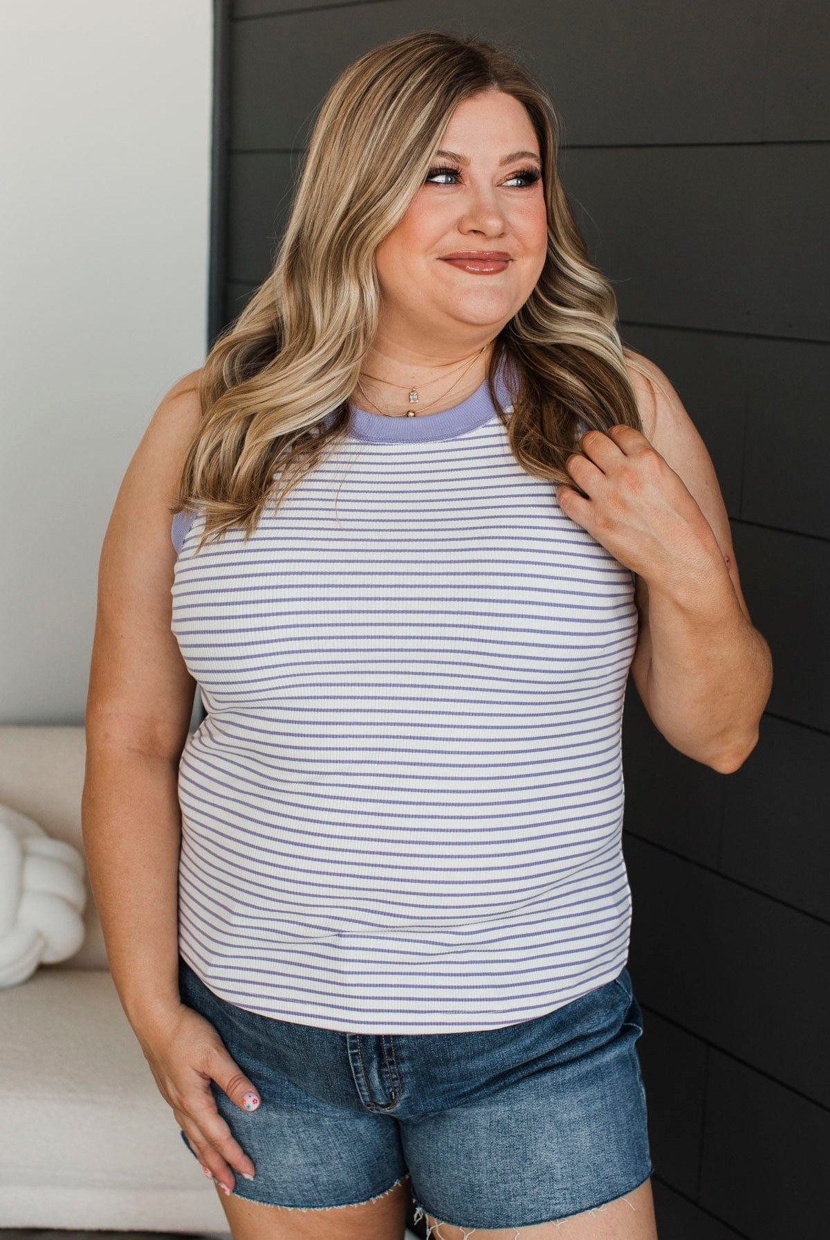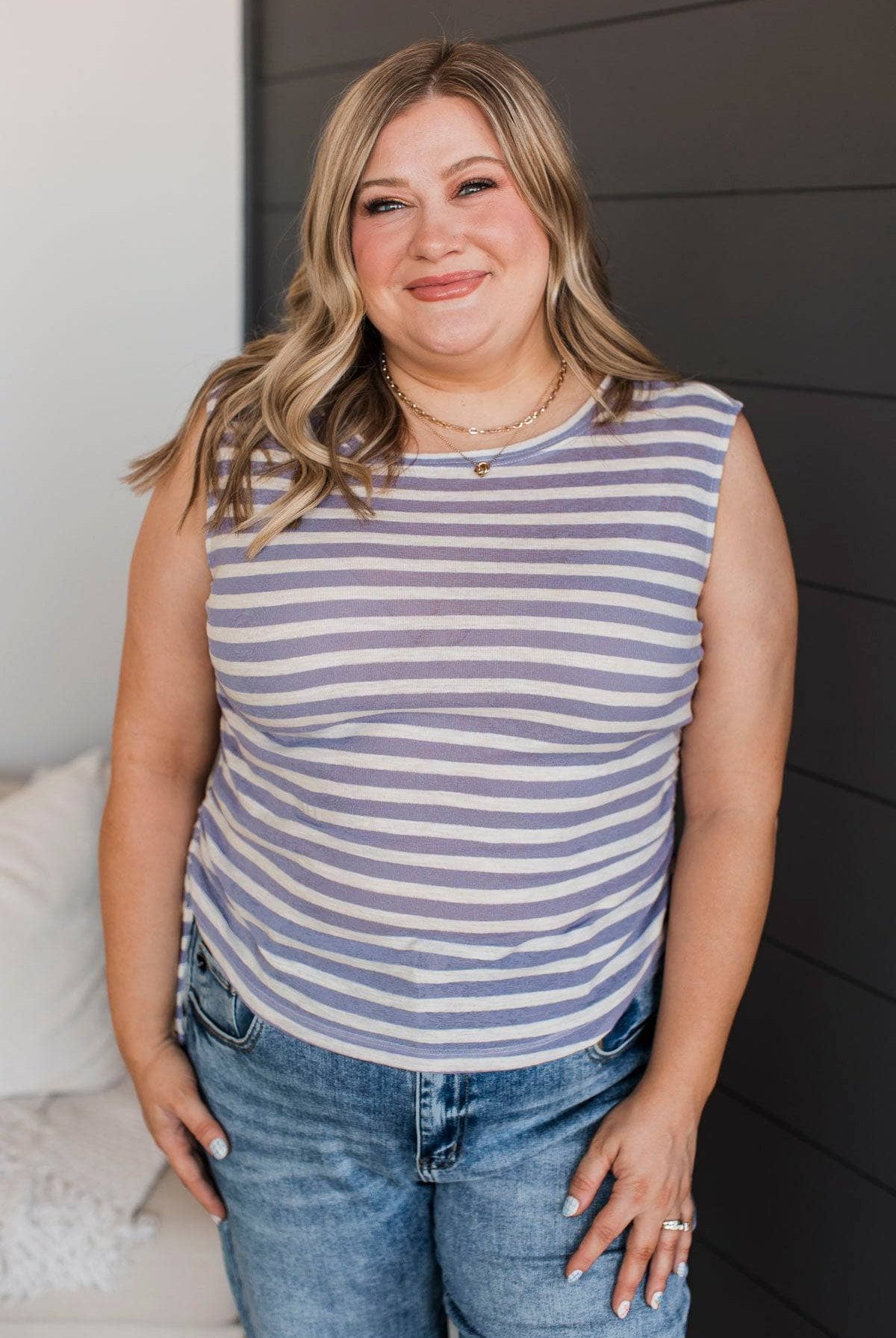 Swear To You Striped Tank Top- Ivory & Dark Periwinkle