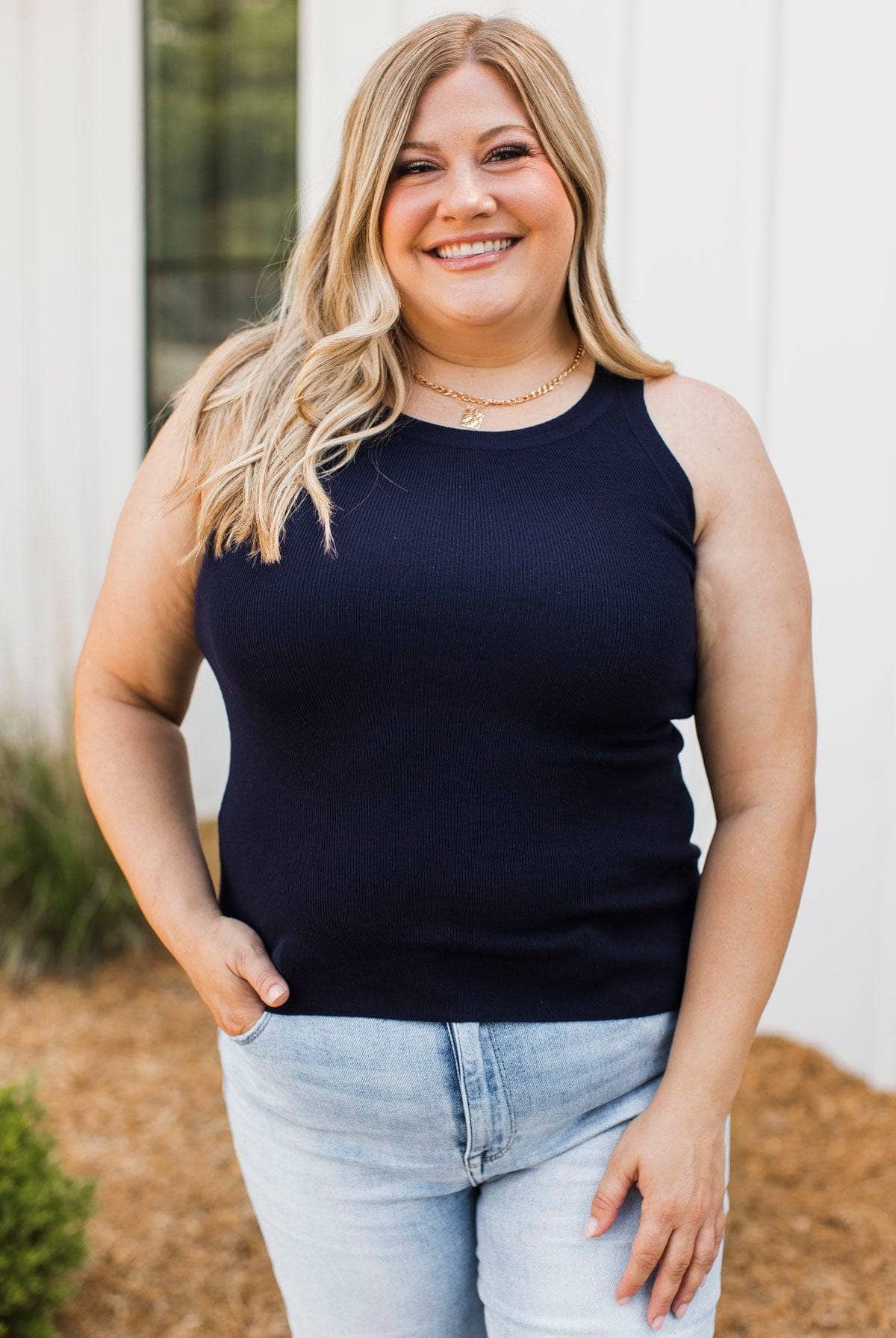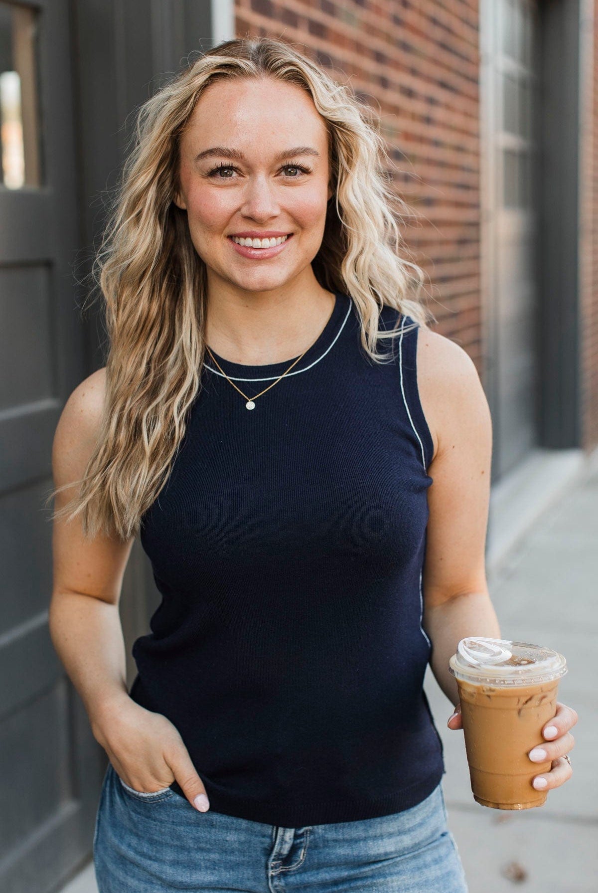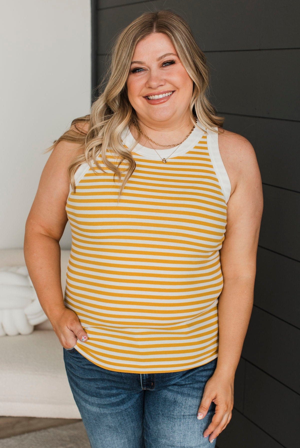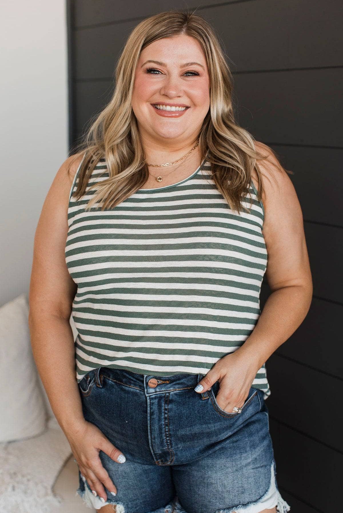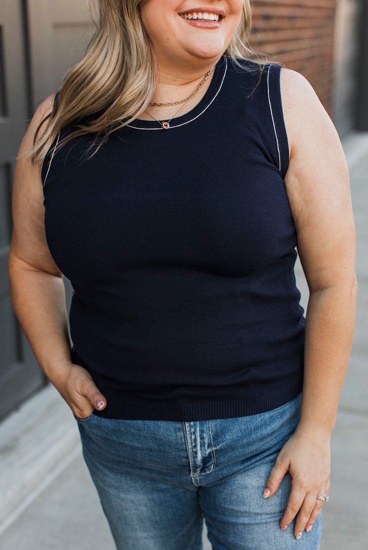 Swear To You Striped Tank Top- Ivory & Dark Periwinkle