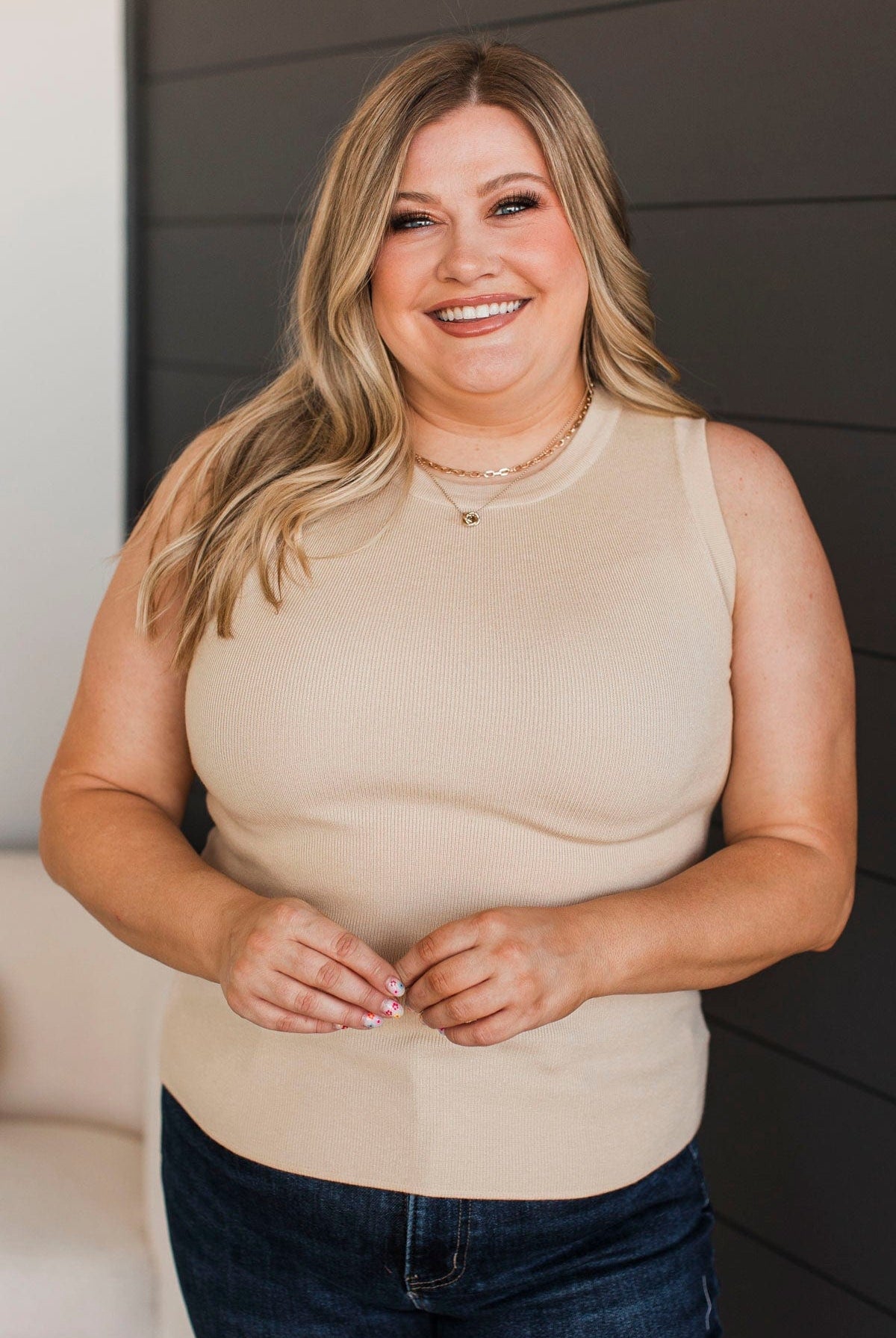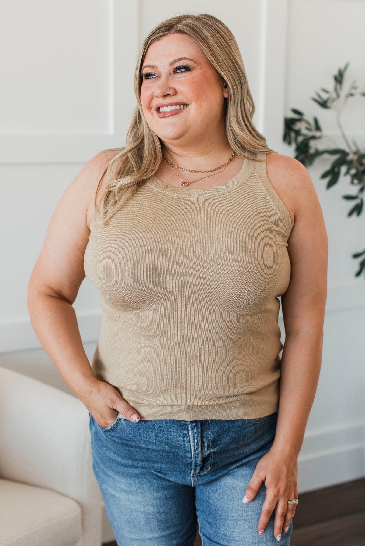 Undeniably Adorable Ribbed Tank Top- Oatmeal