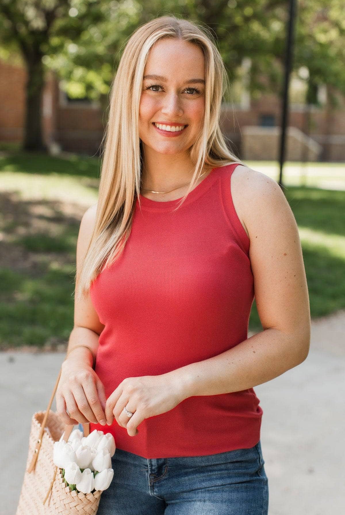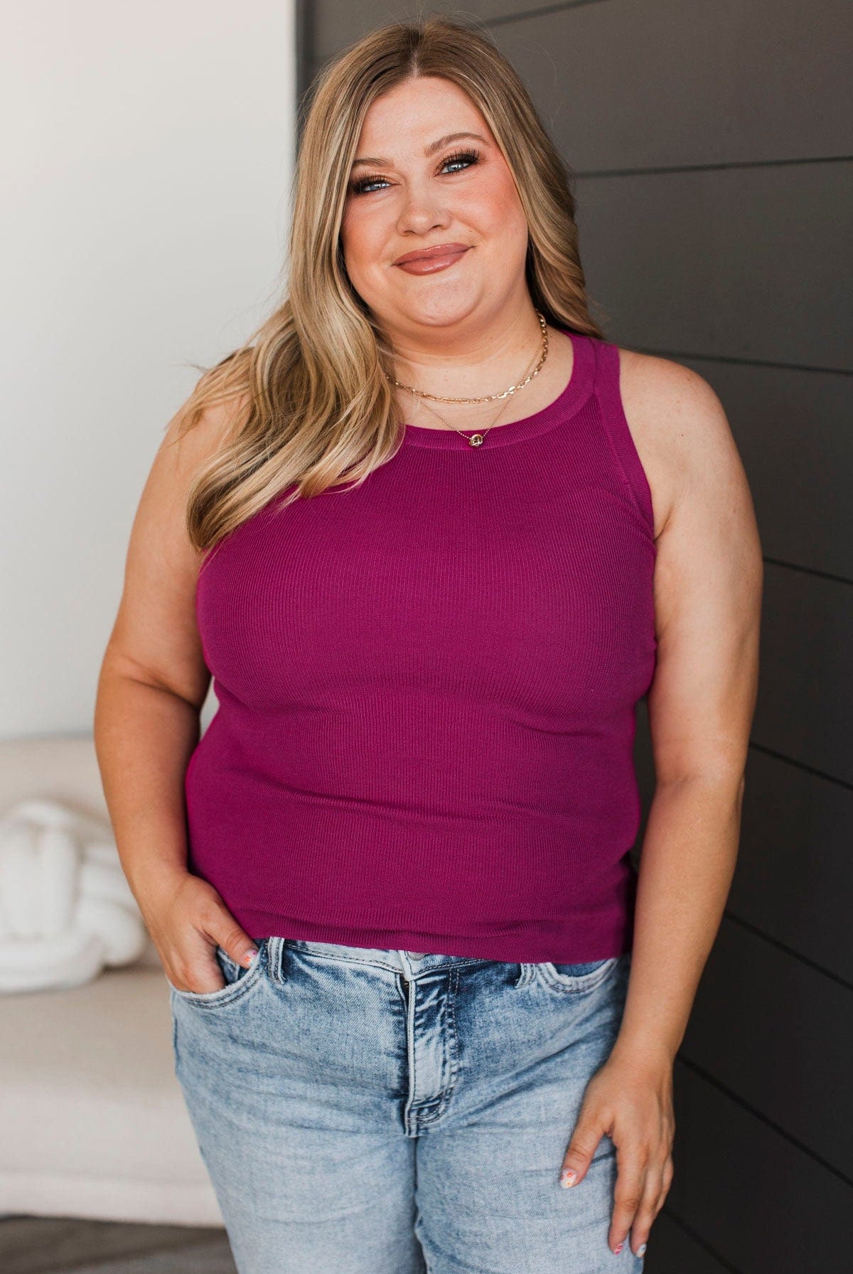 Undeniably Adorable Ribbed Tank Top- Hot Pink
