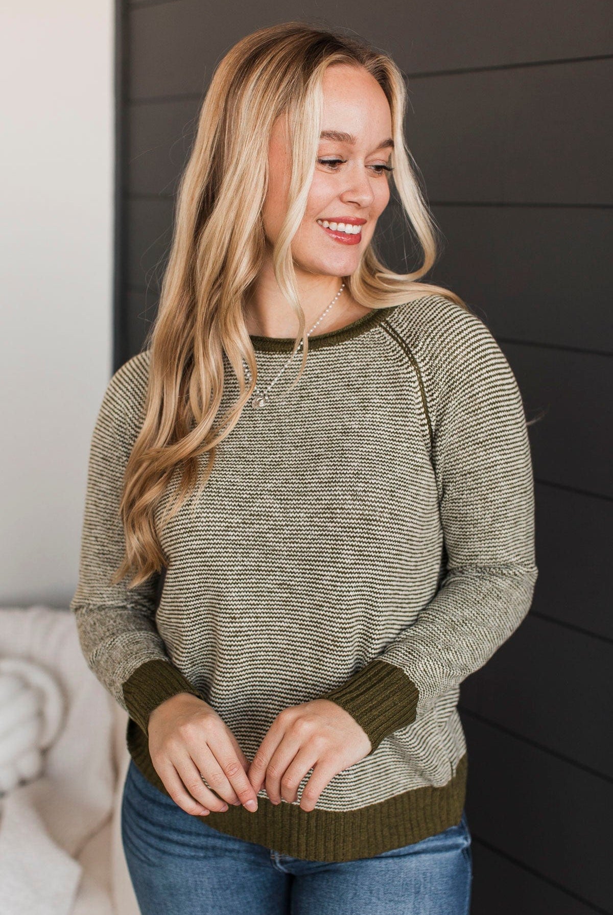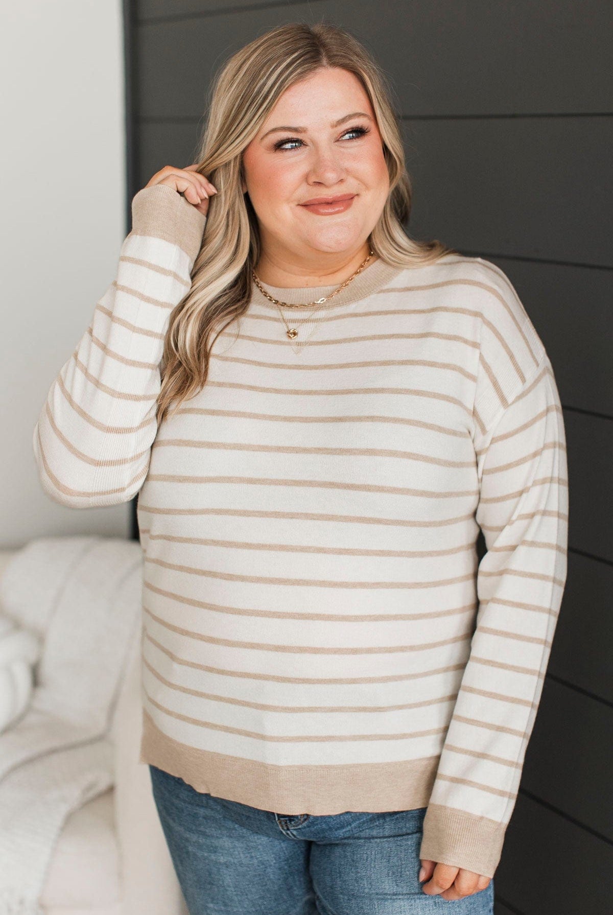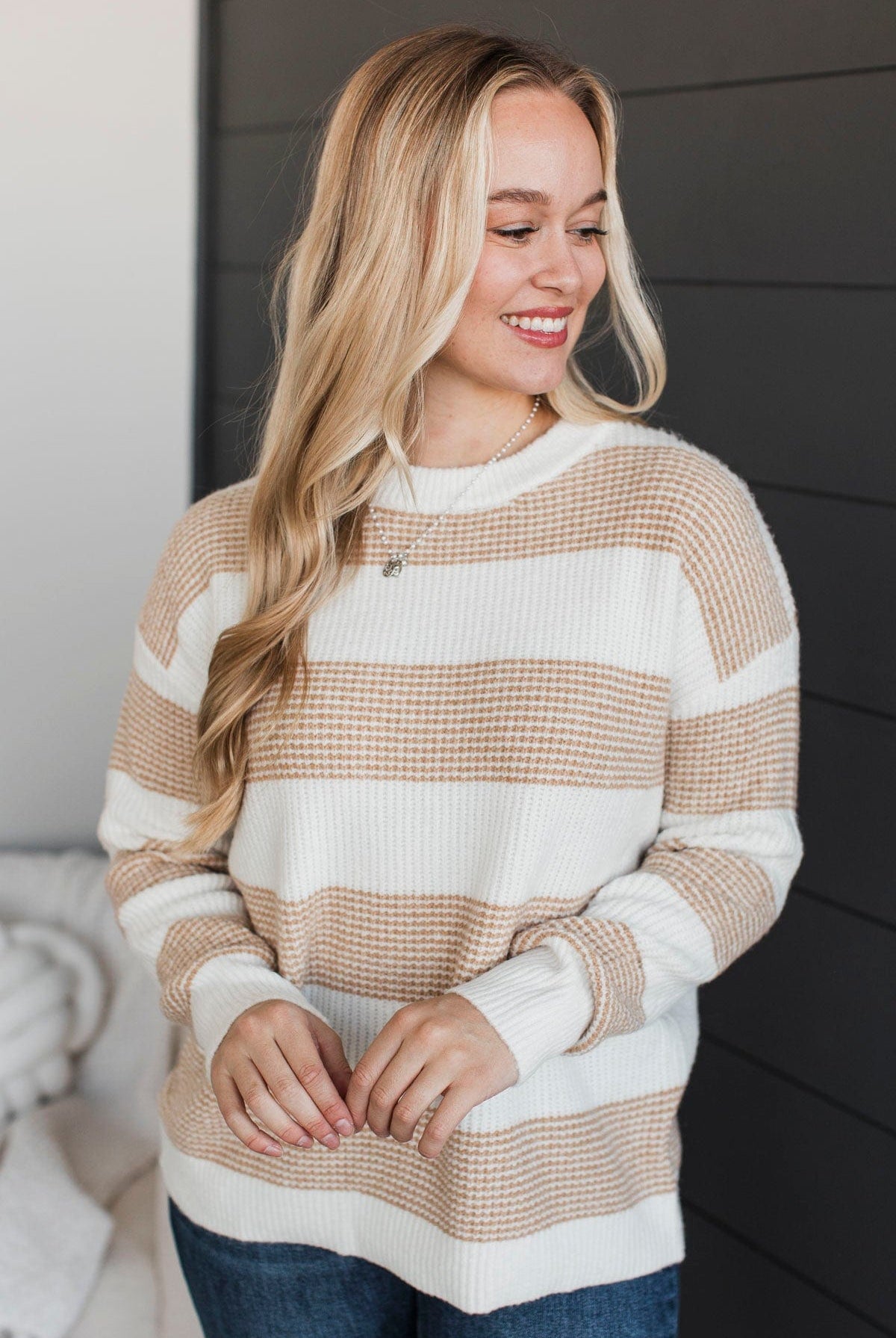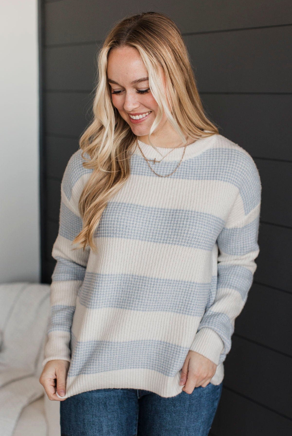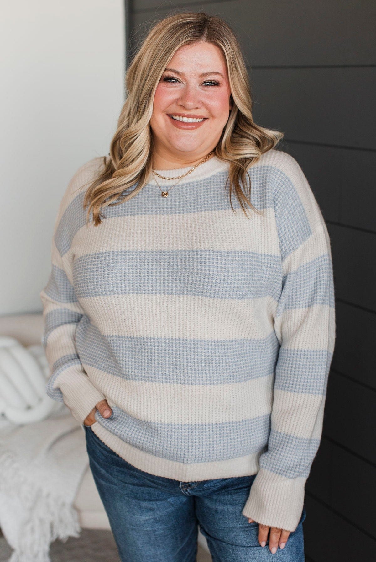 Center Of Your World Knit Sweater- Ivory & Chambray