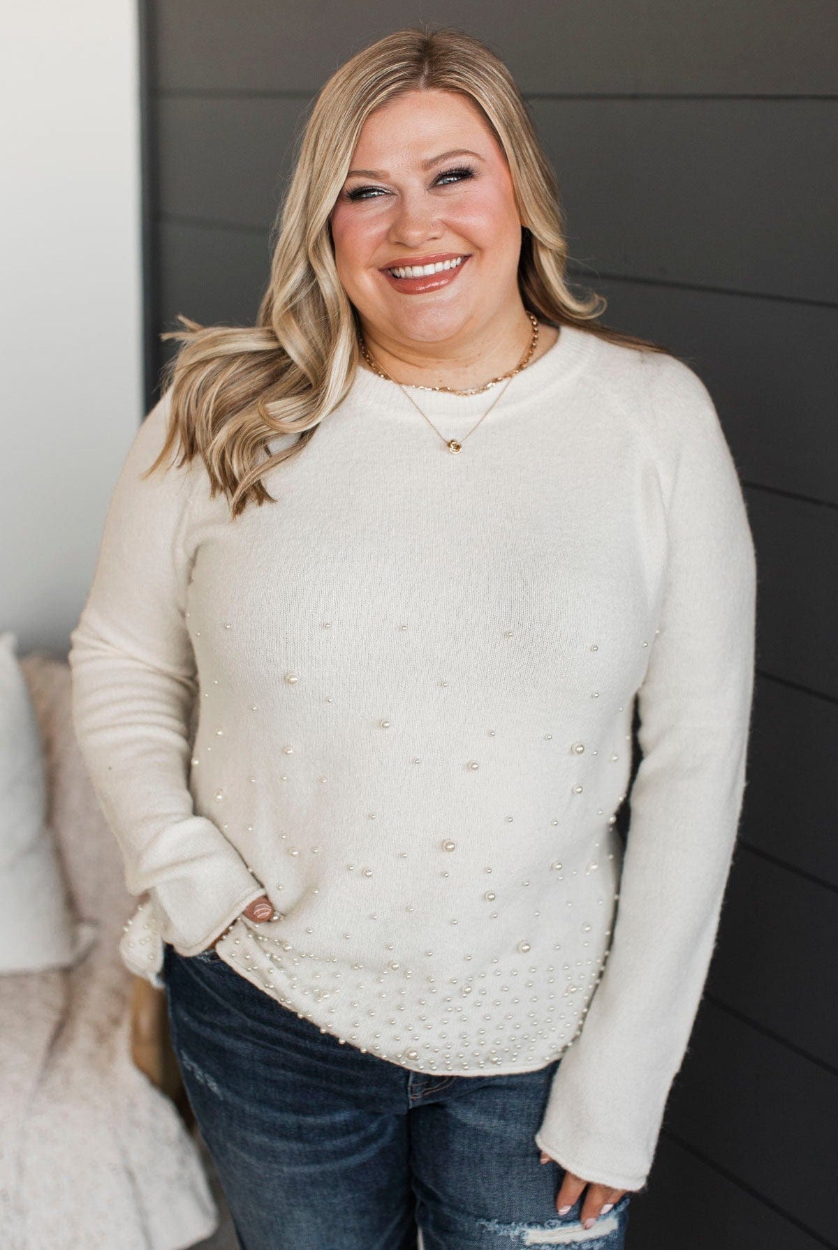 Feeling Inspired Pearl Knit Sweater- Ivory