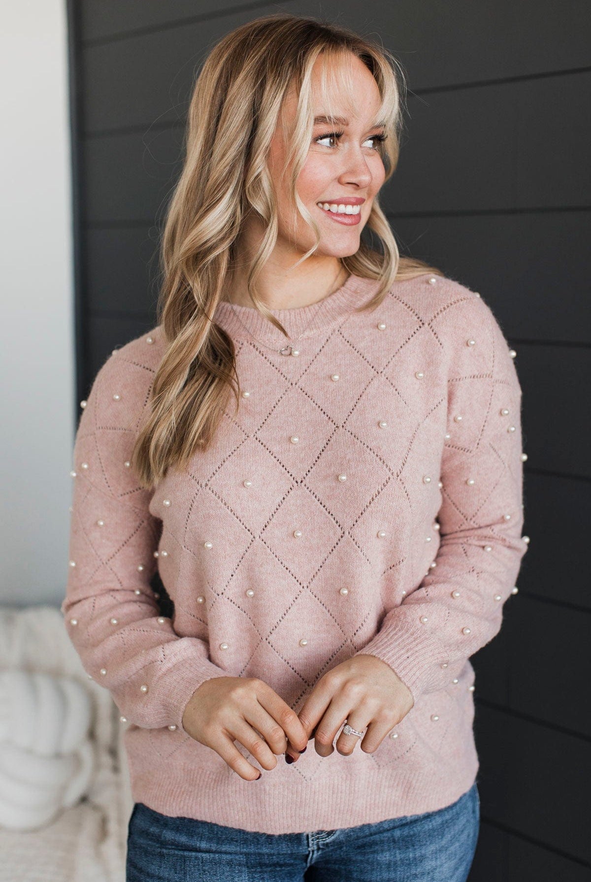 Beautiful Dreams Beaded Pointelle Sweater- Dusty Blush