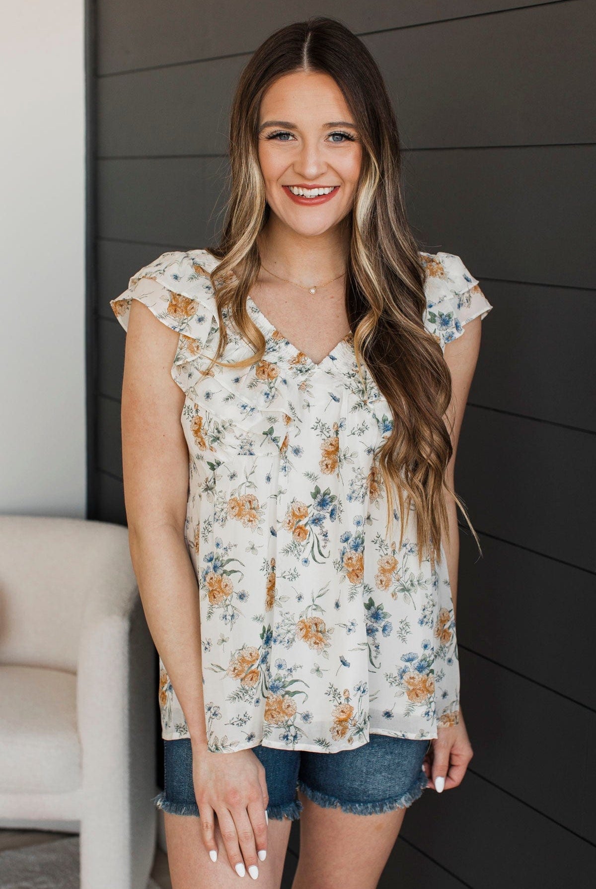 Capture The Coast Swim Top- Teal & Ivory Floral
