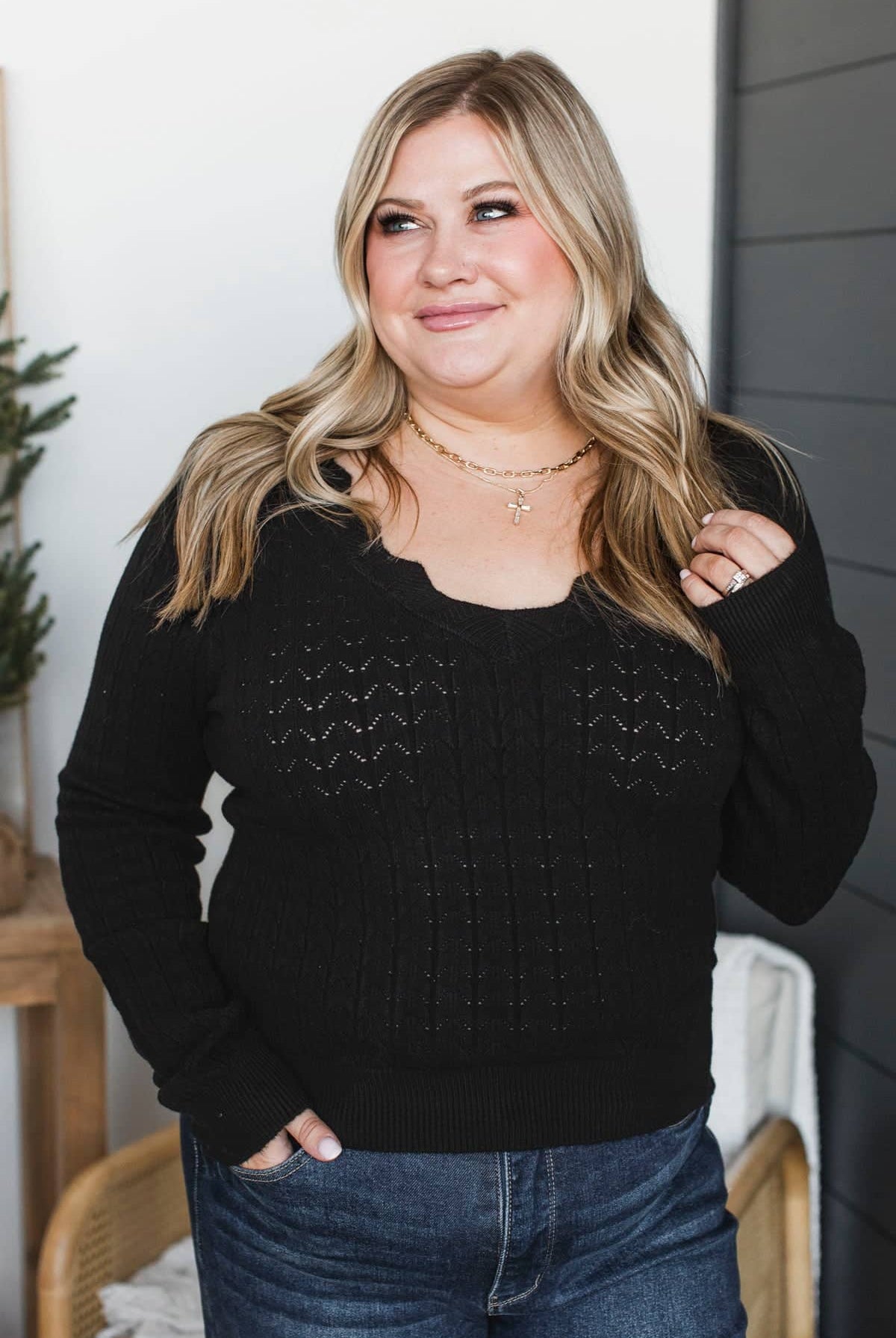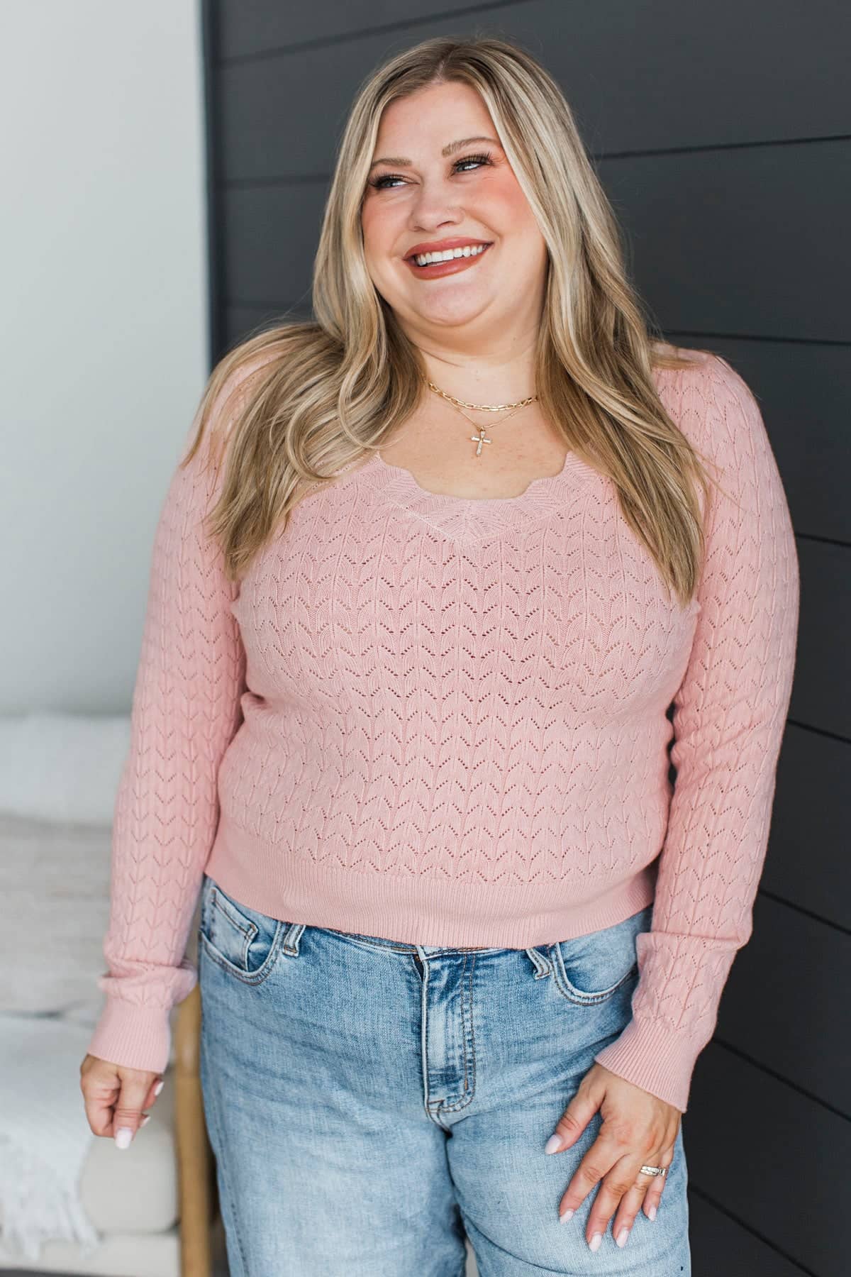 Live Passionately V-Neck Pointelle Sweater- Blush