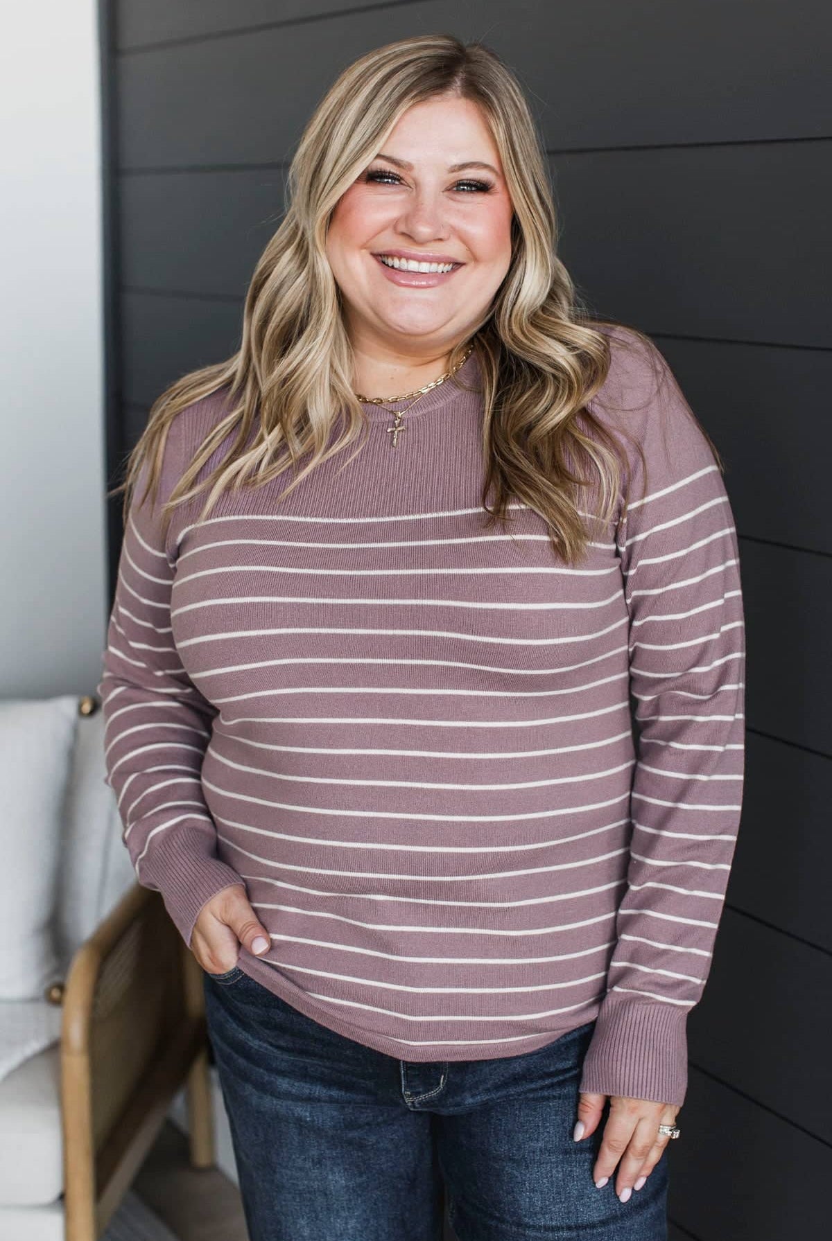 Beyond Grateful Stitch Stripe Sweater- Orchid