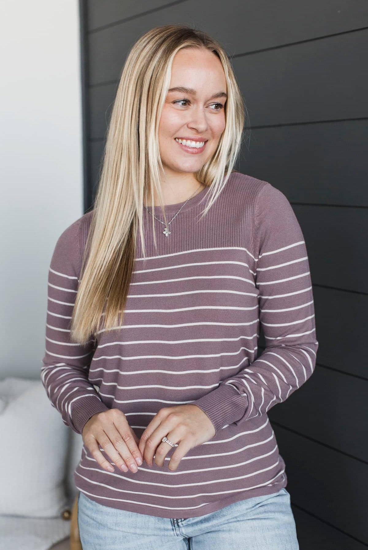 Awe Inspiring Striped Knit Sweater- Dusty Lavender
