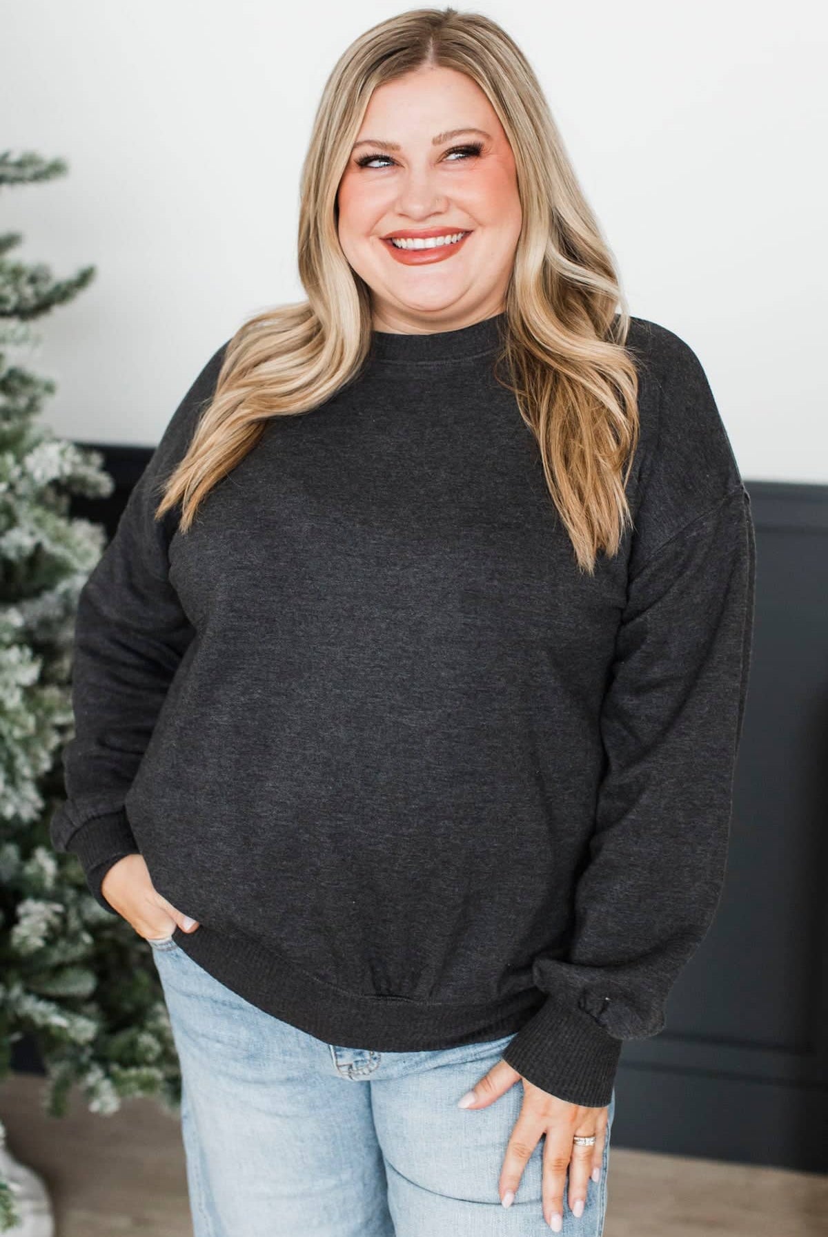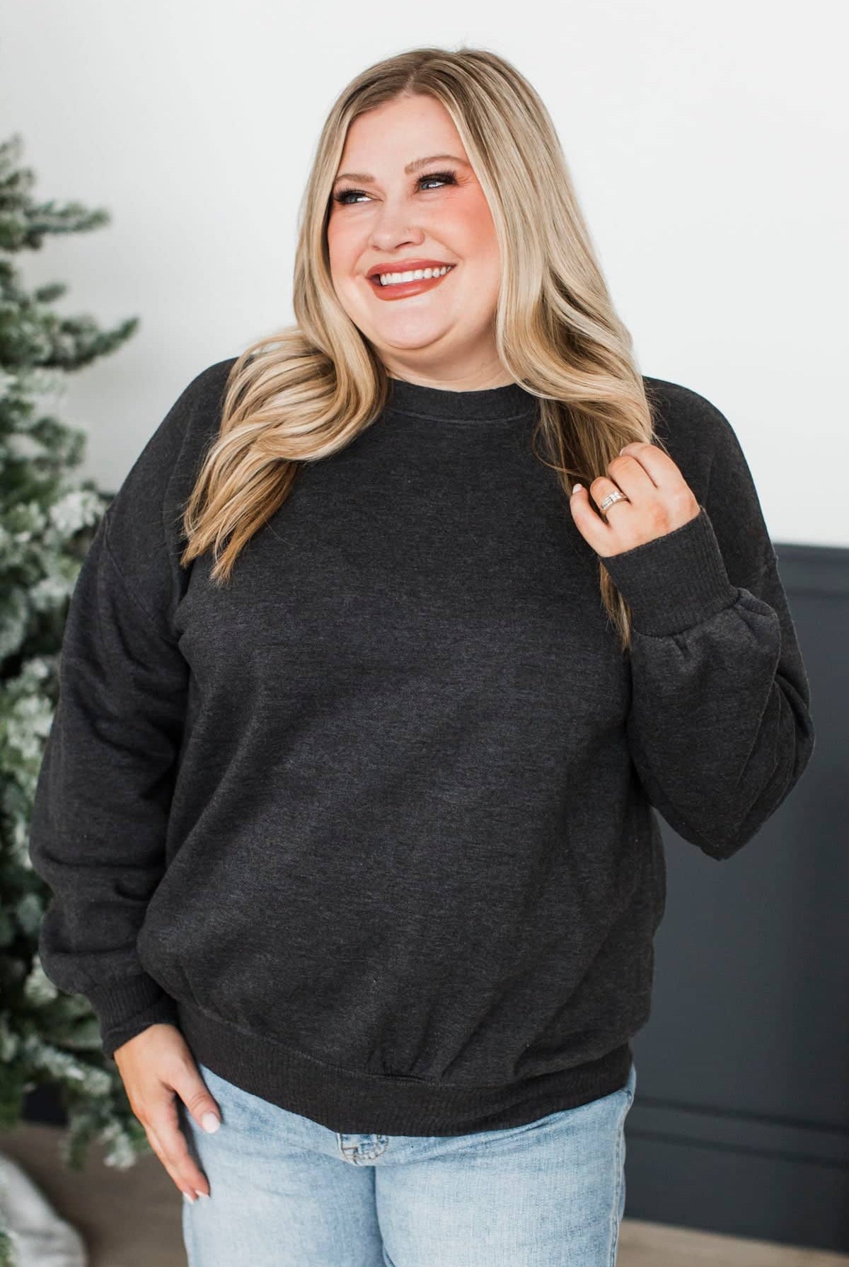 Looking Great Long Sleeve Ribbed Top- Charcoal