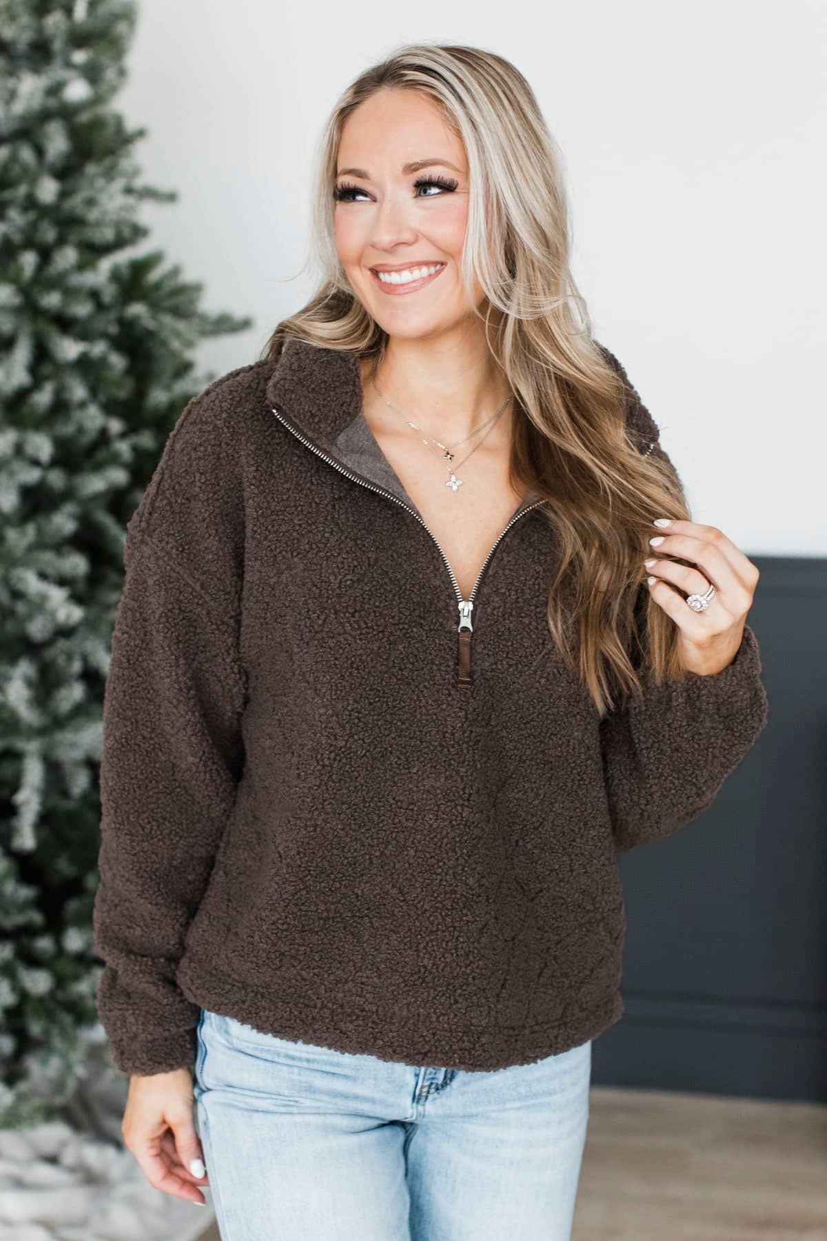 Thread & Supply Just Feels Right Fleece Pullover- Brown