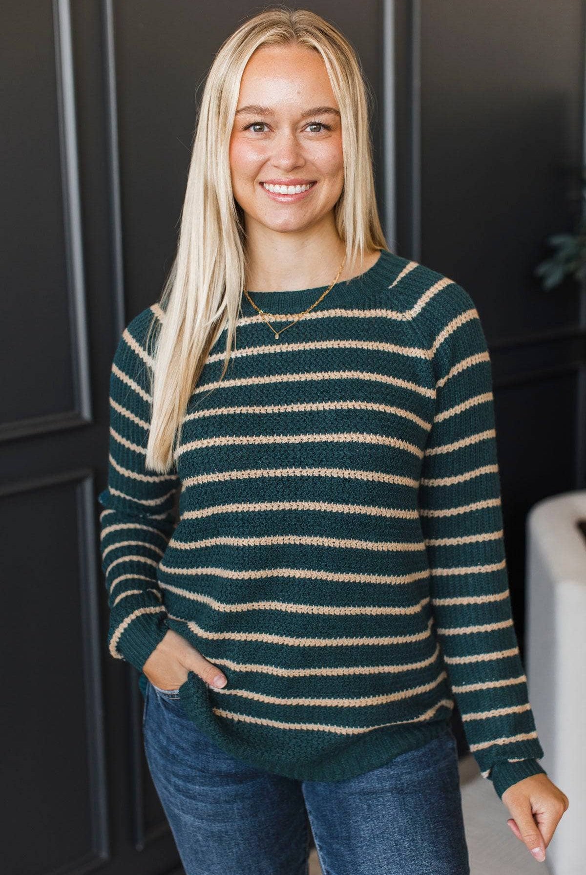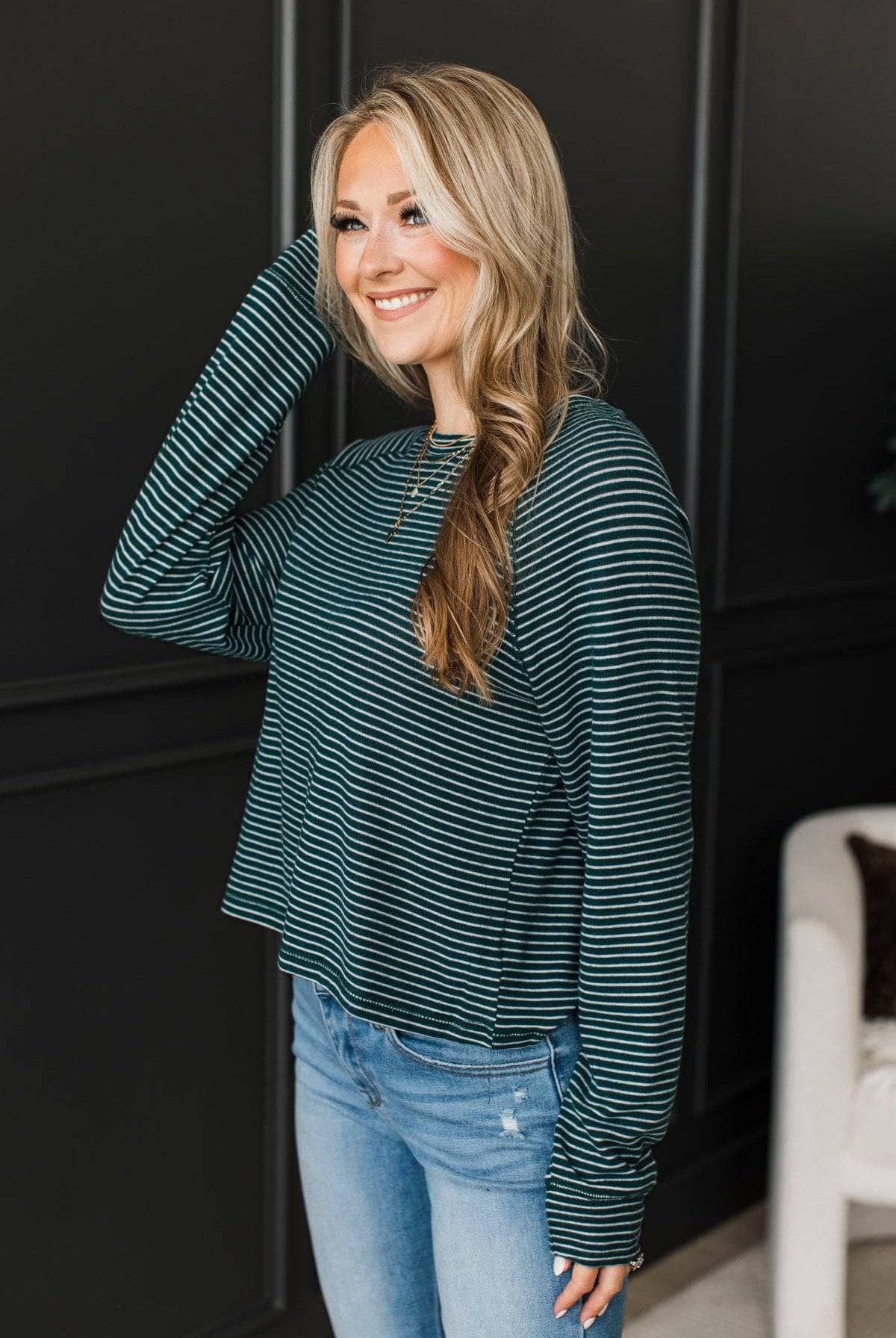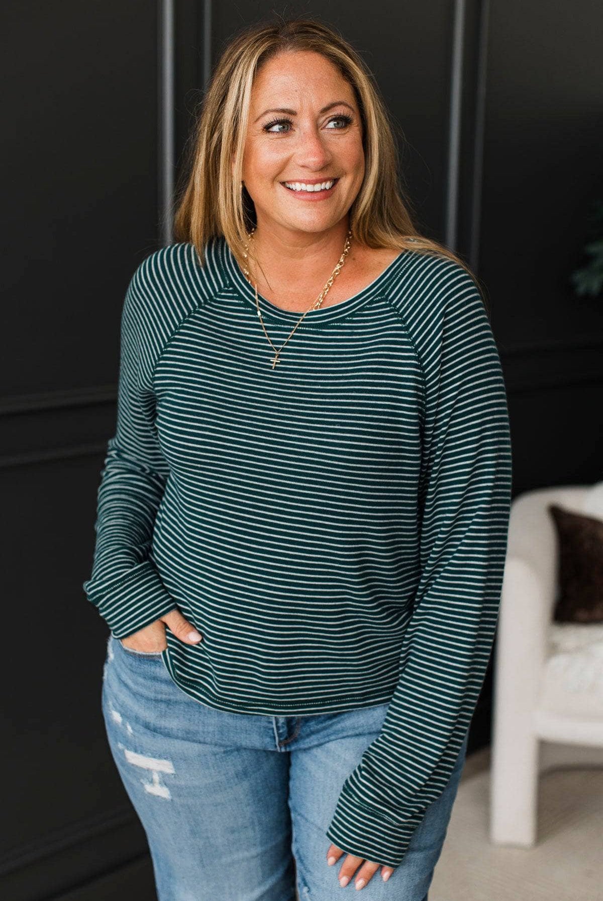 Vibrant Smiles Long Sleeve Striped Top- Dark Jade