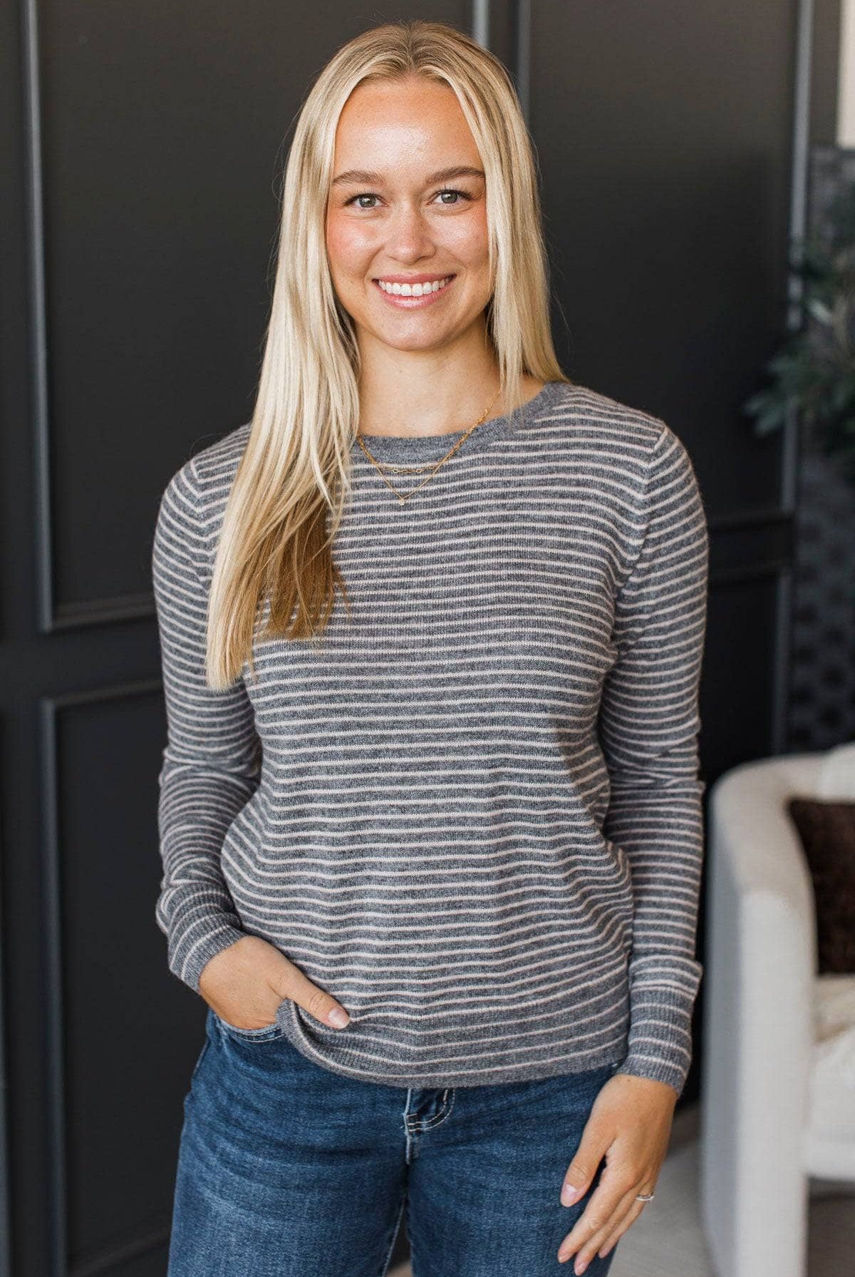 Humor Me Two-Tone Knit Sweater- Light Grey