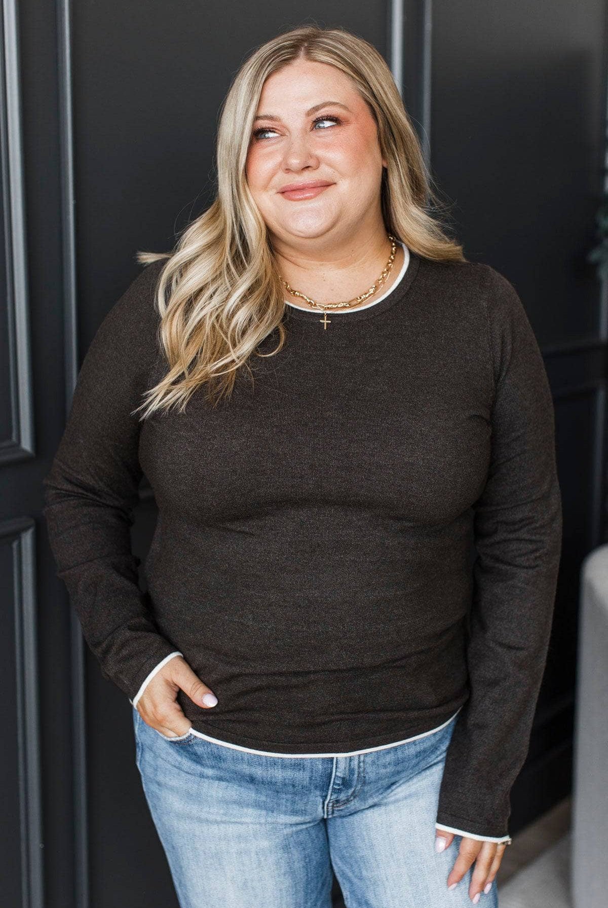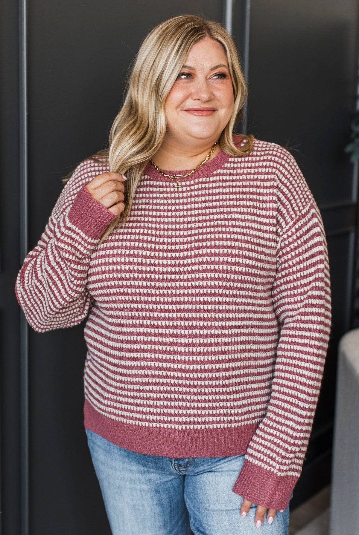 Perfect Company Striped Chenille Knit Sweater- Ivory & Brown