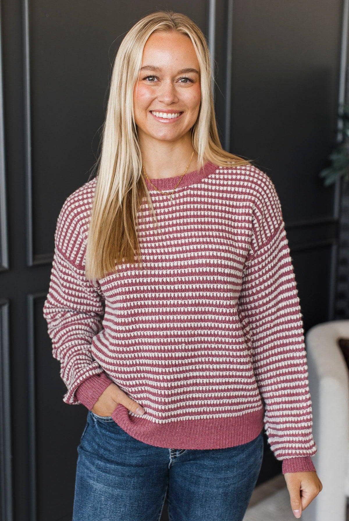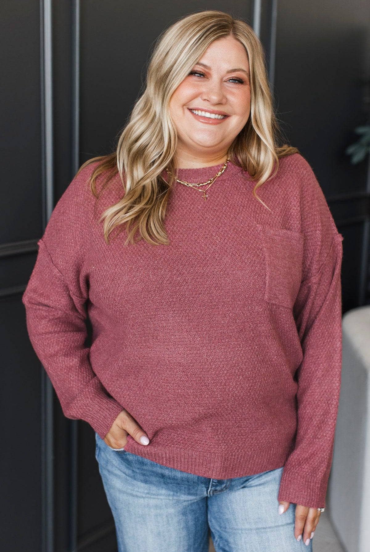 With A Little Luck Waffle Knit Sweater- Dark Rose