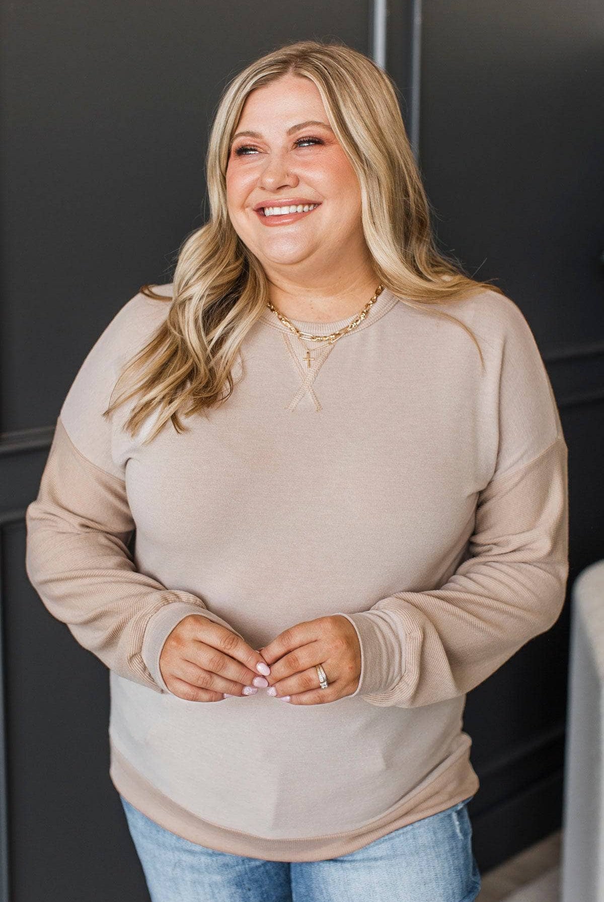 Fuel Your Passion Fabric Block Pullover Top- Natural