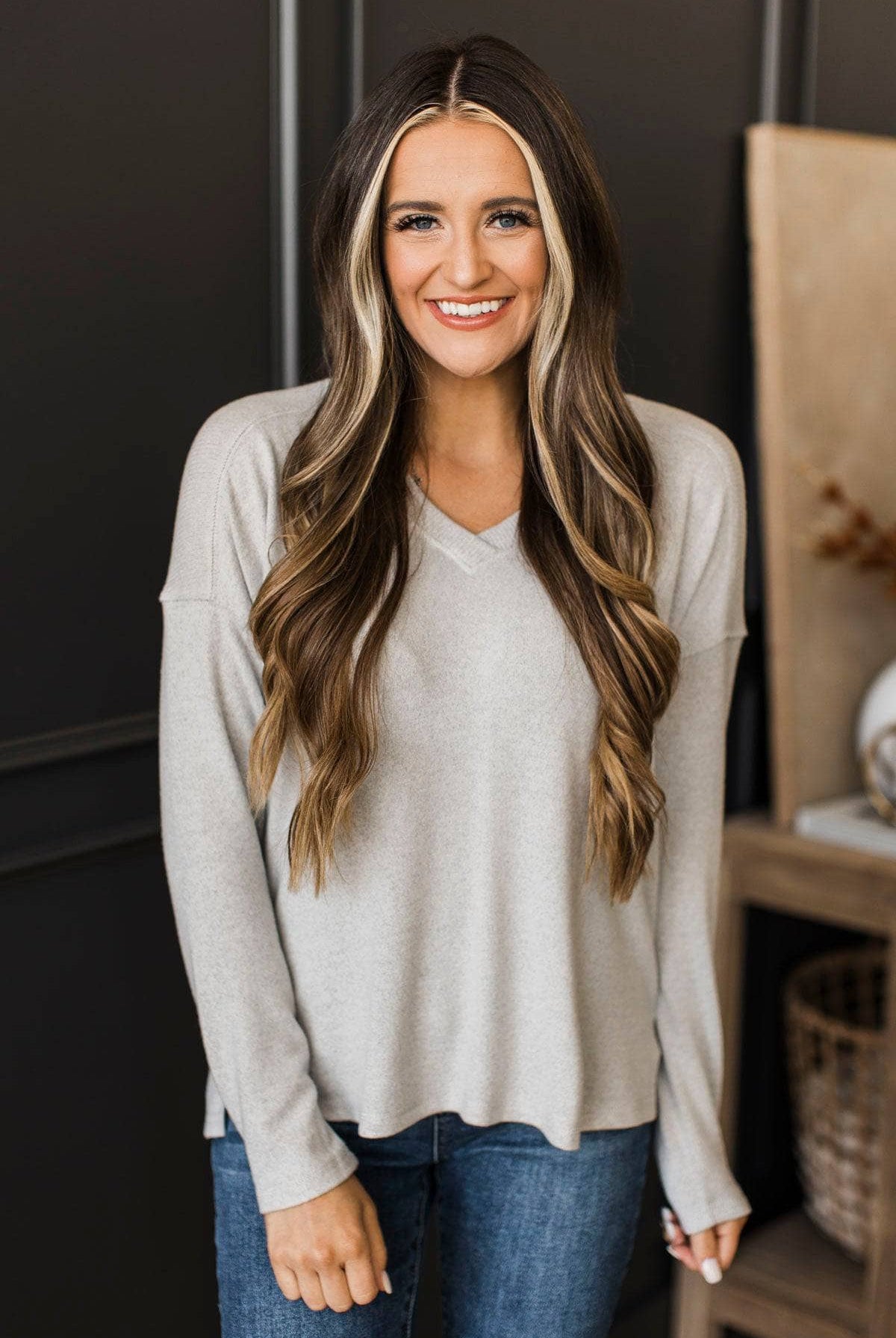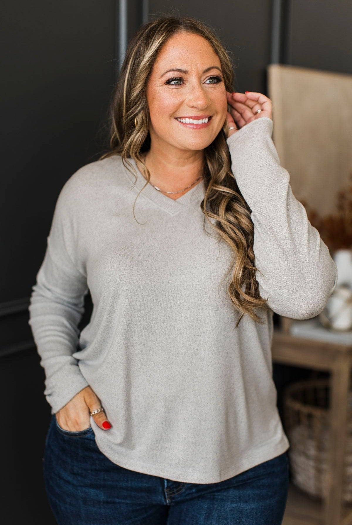 Welcoming Everyone V-Neck Top- Heather Grey